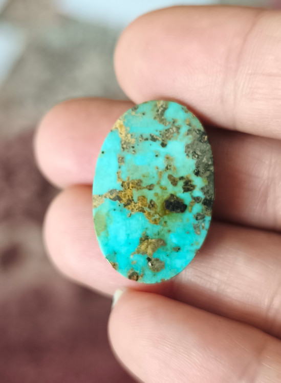 نگین فیروزه نیشابور اصل با رگه های طلایی ۲۷در ۱۷میل فوق العاده زیبا و کمیاب