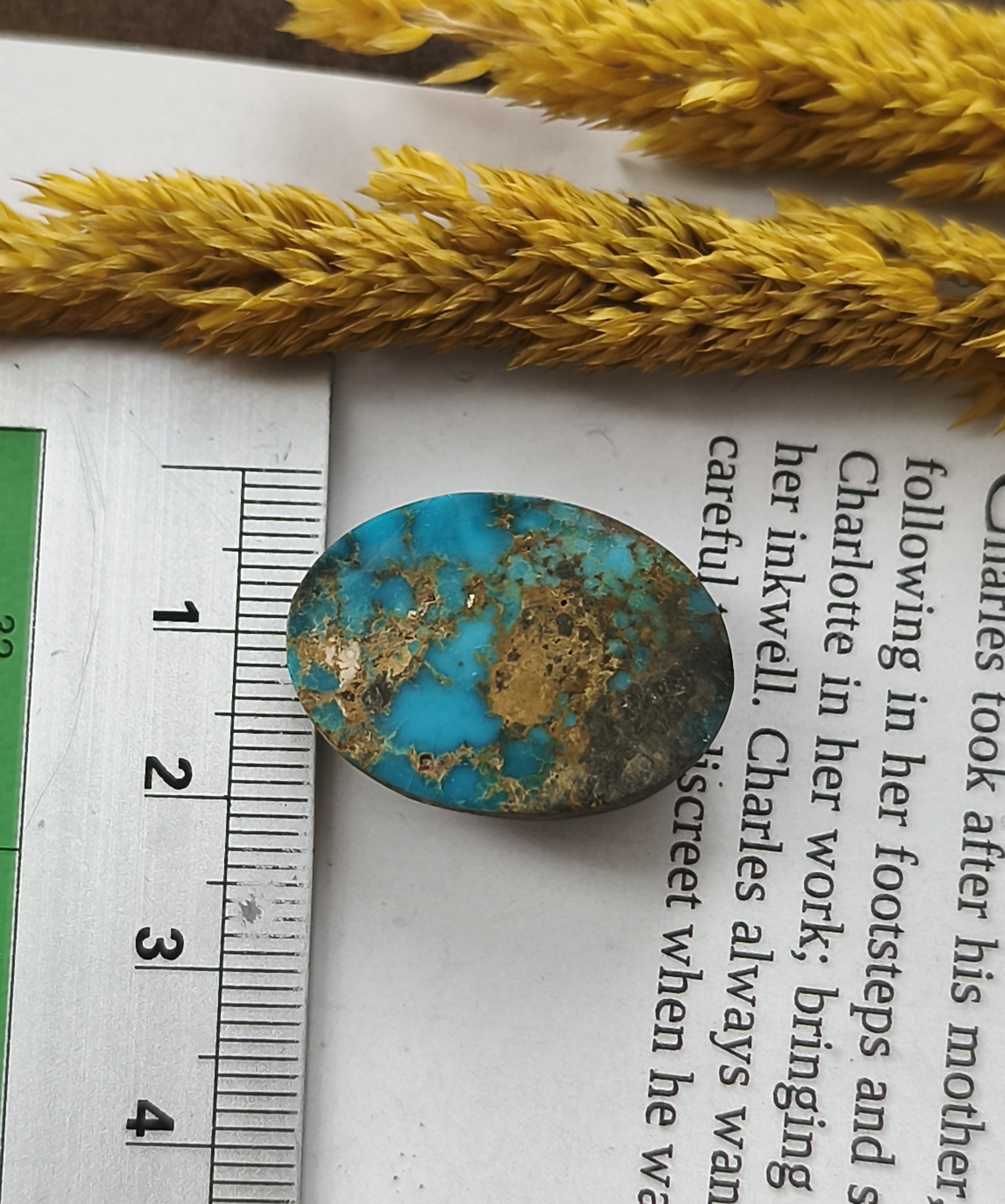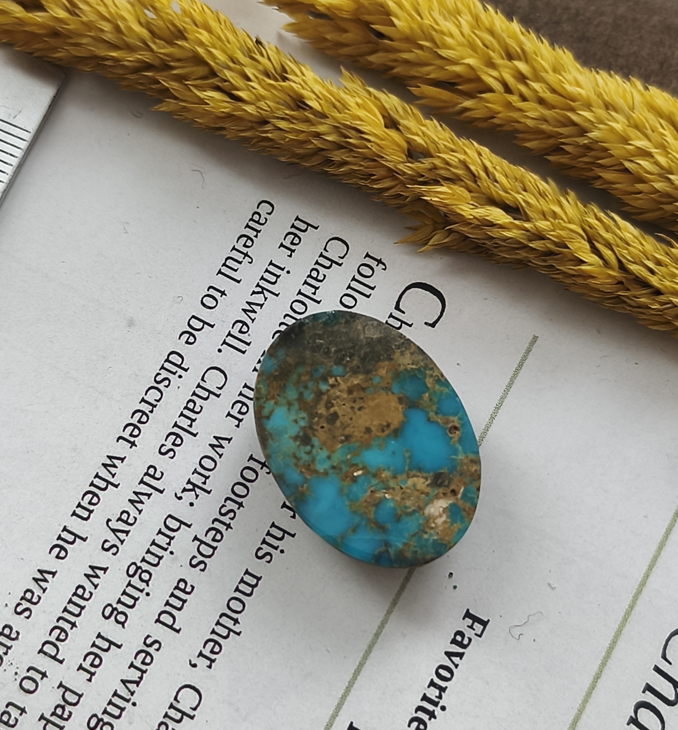 نگین فیروزه نیشابور اصل با رگه های طلایی ۲۷در ۲۰ میل فوق العاده زیبا و کمیاب