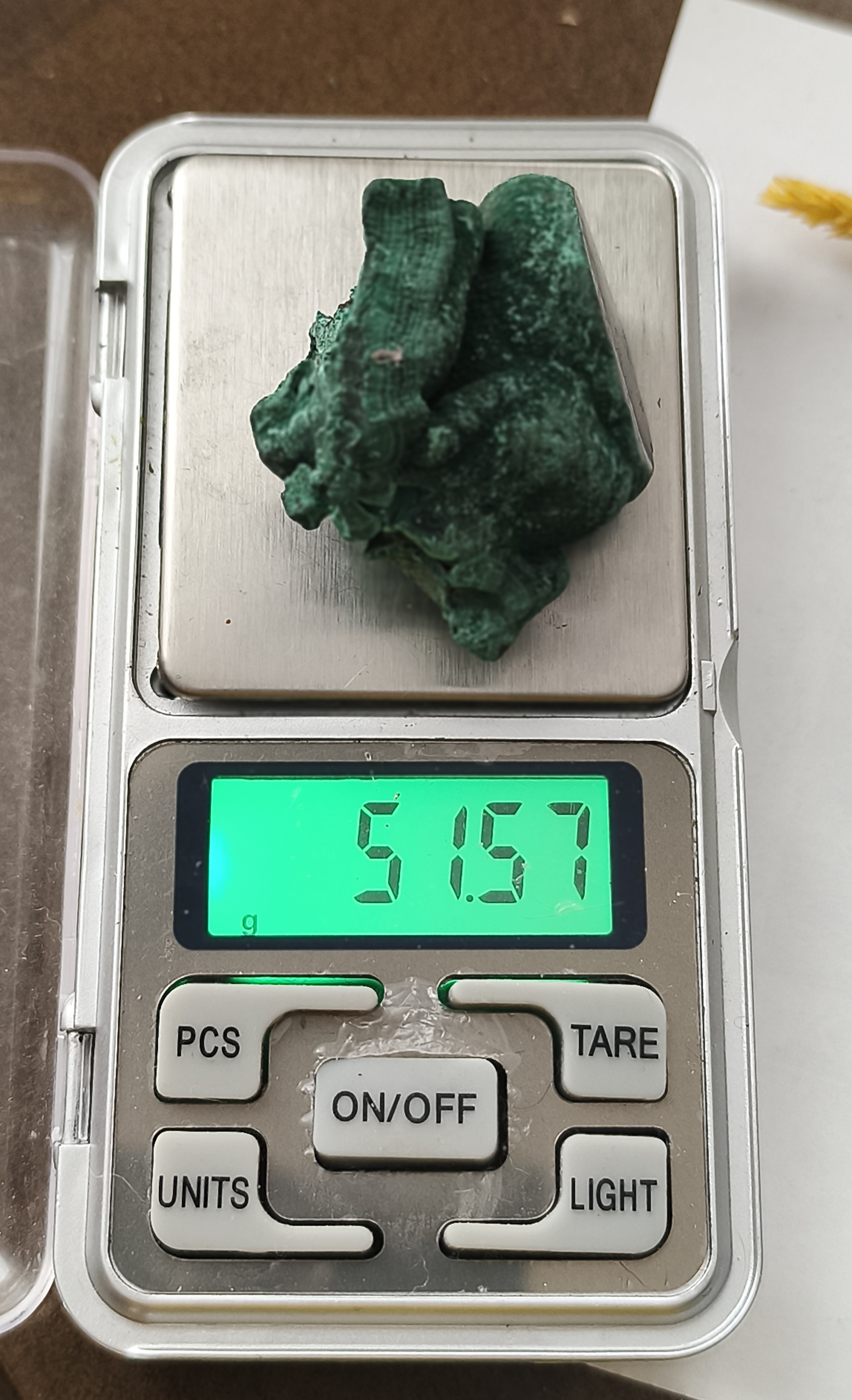 سنگ مالاکیت ۵۱.۵۷گرم راف تراش نخورده اصل معدنی کلکسیونی