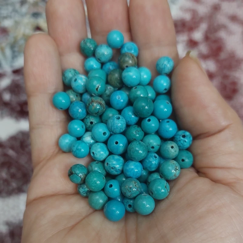 مهره سنگ فیروزه مصری سایز 6 سوراخ دار سنگ اصل طبیعی درجه یک گوی