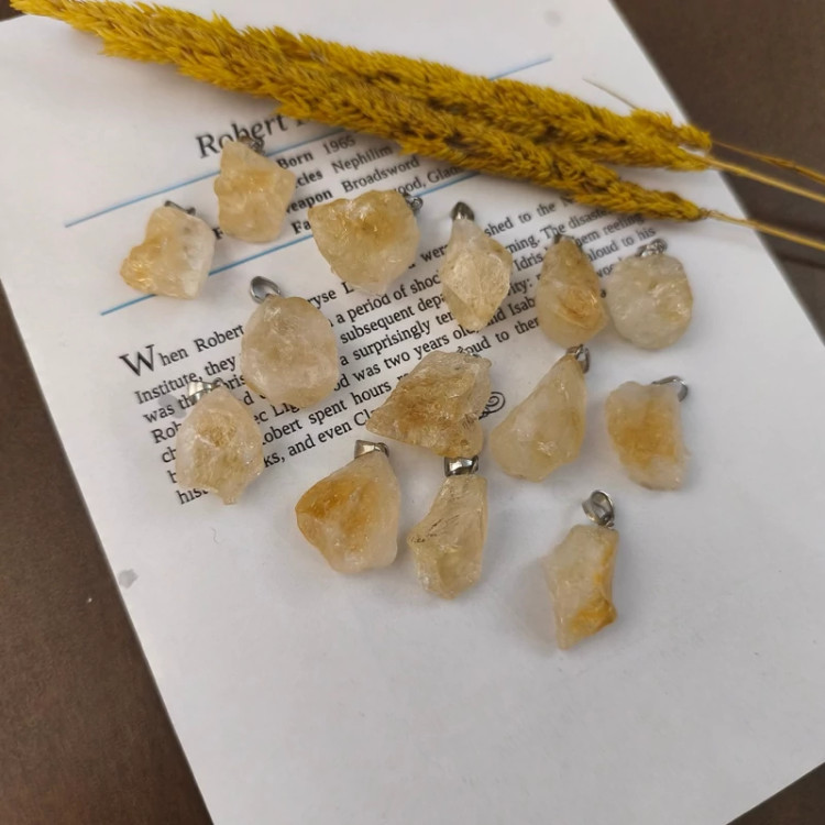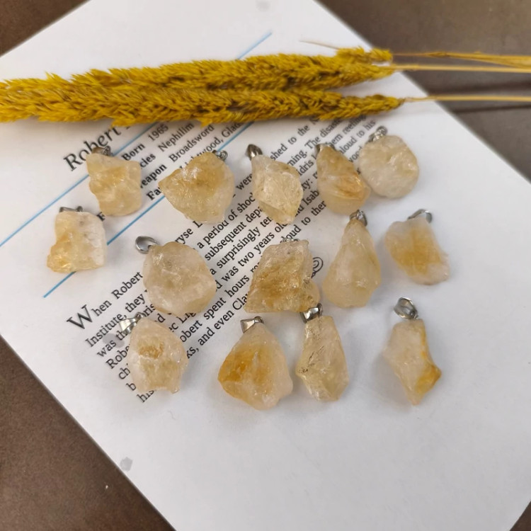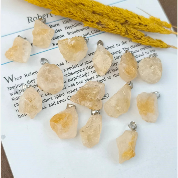 گردنبند سنگ سیترین راف (تراش نخورده) سنگ اصل درجه یک آویز سیترین به همراه زنجیر استیل