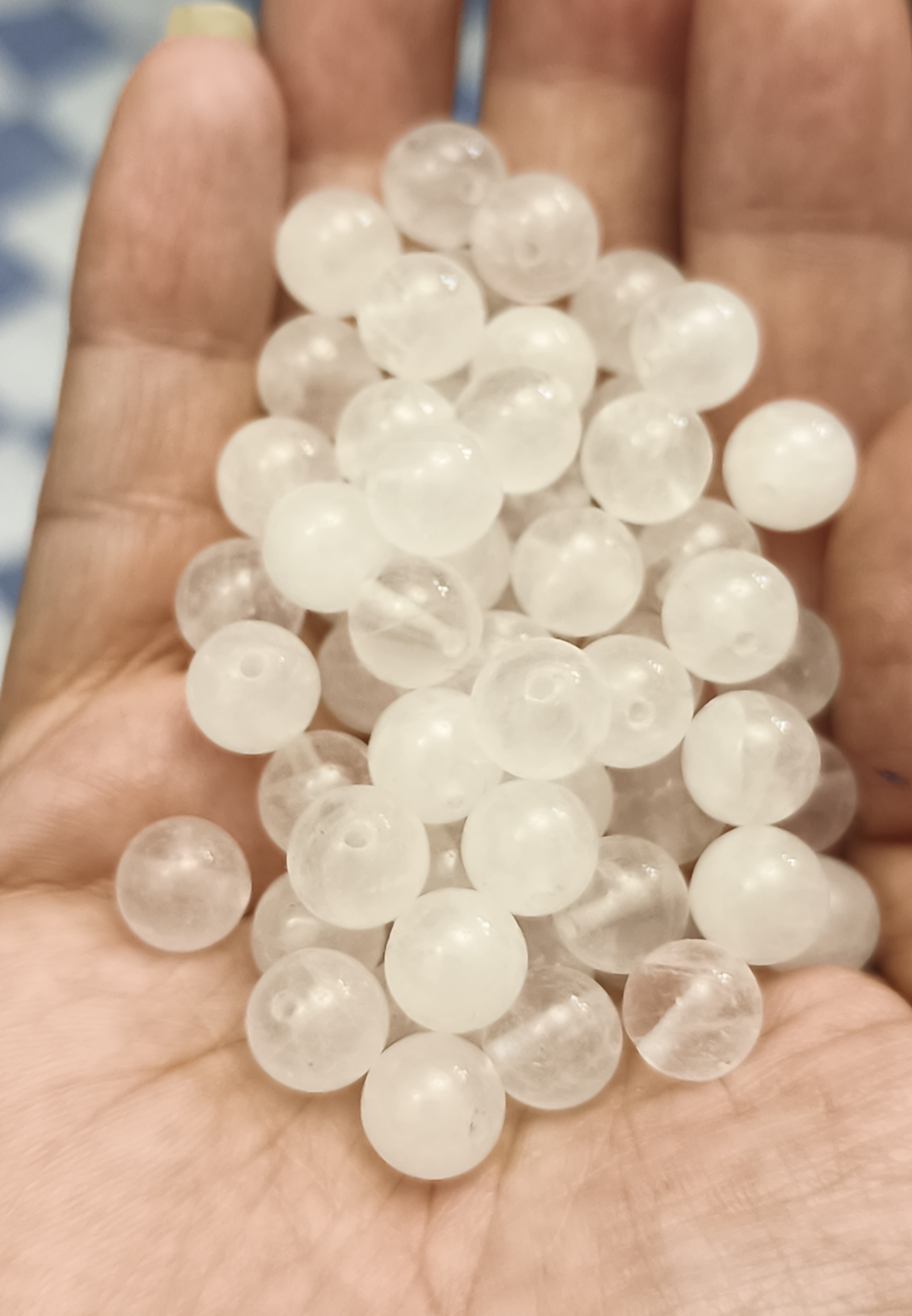 مهره سنگ کریستال کوارتز شیری سایز ۸کوارتز یخی سوراخ دار اصل معدنی