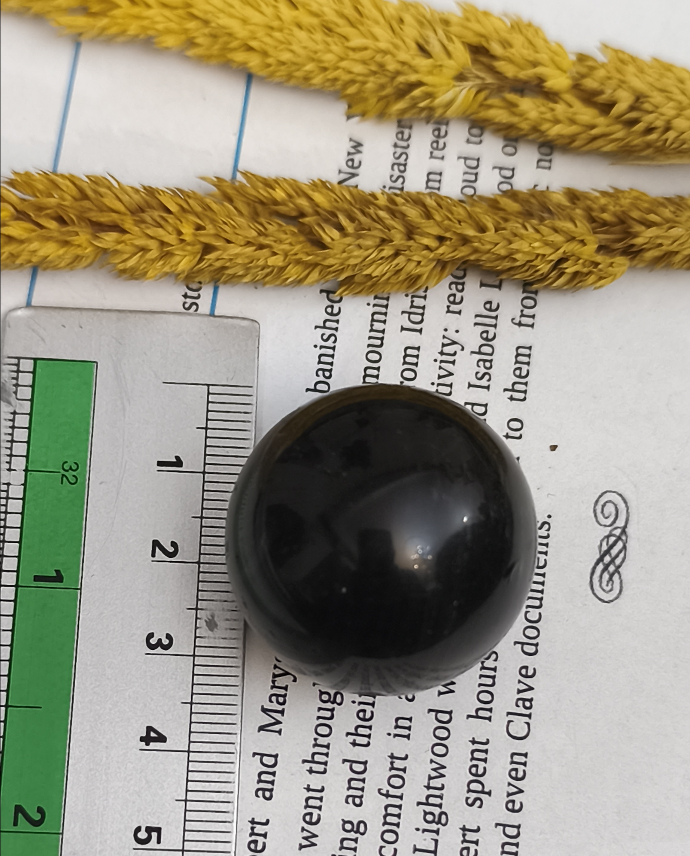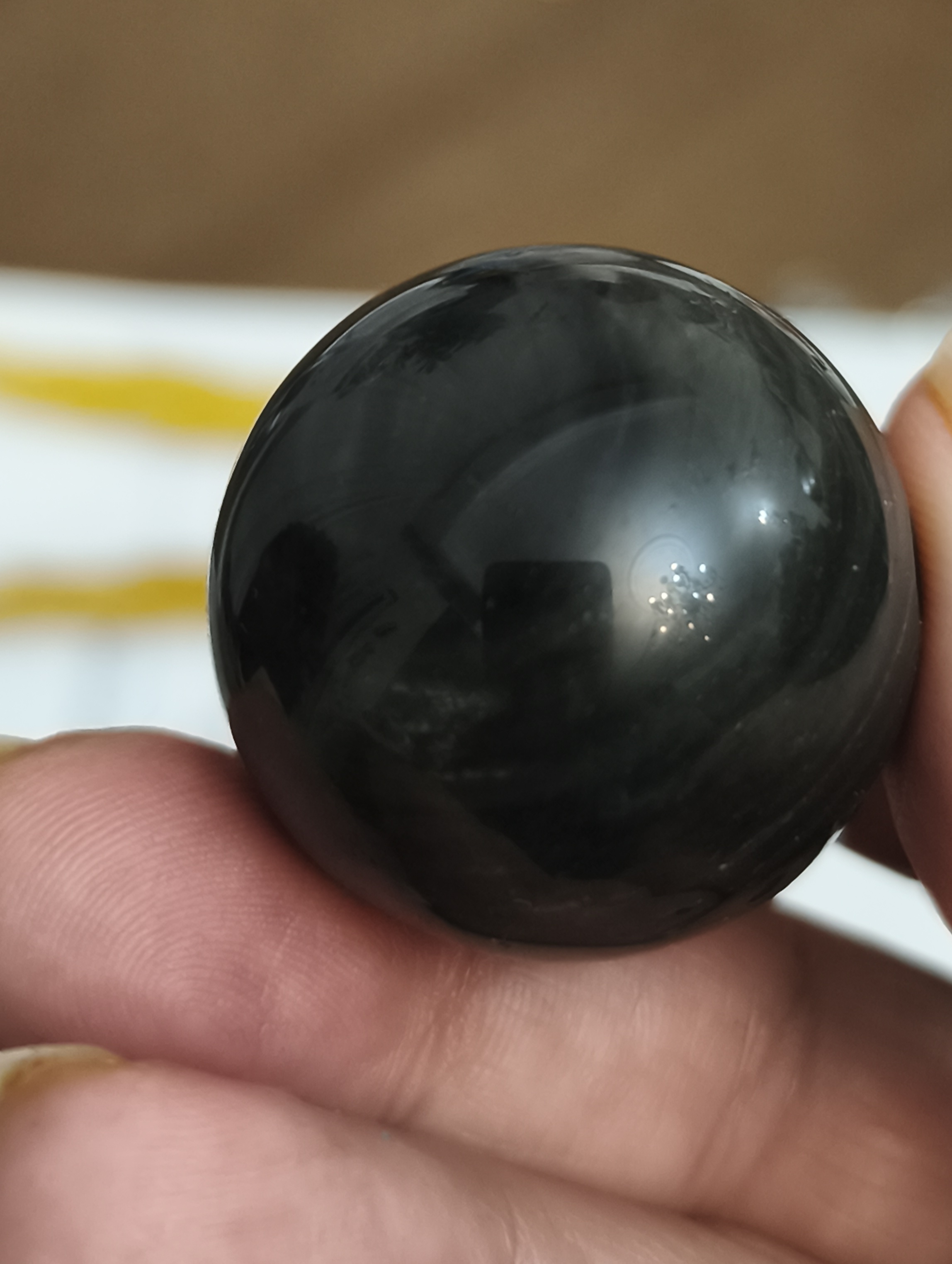 گوی سنگ آبسیدین سیاه ۳۰میل سپزاخ دار اصل معدنی