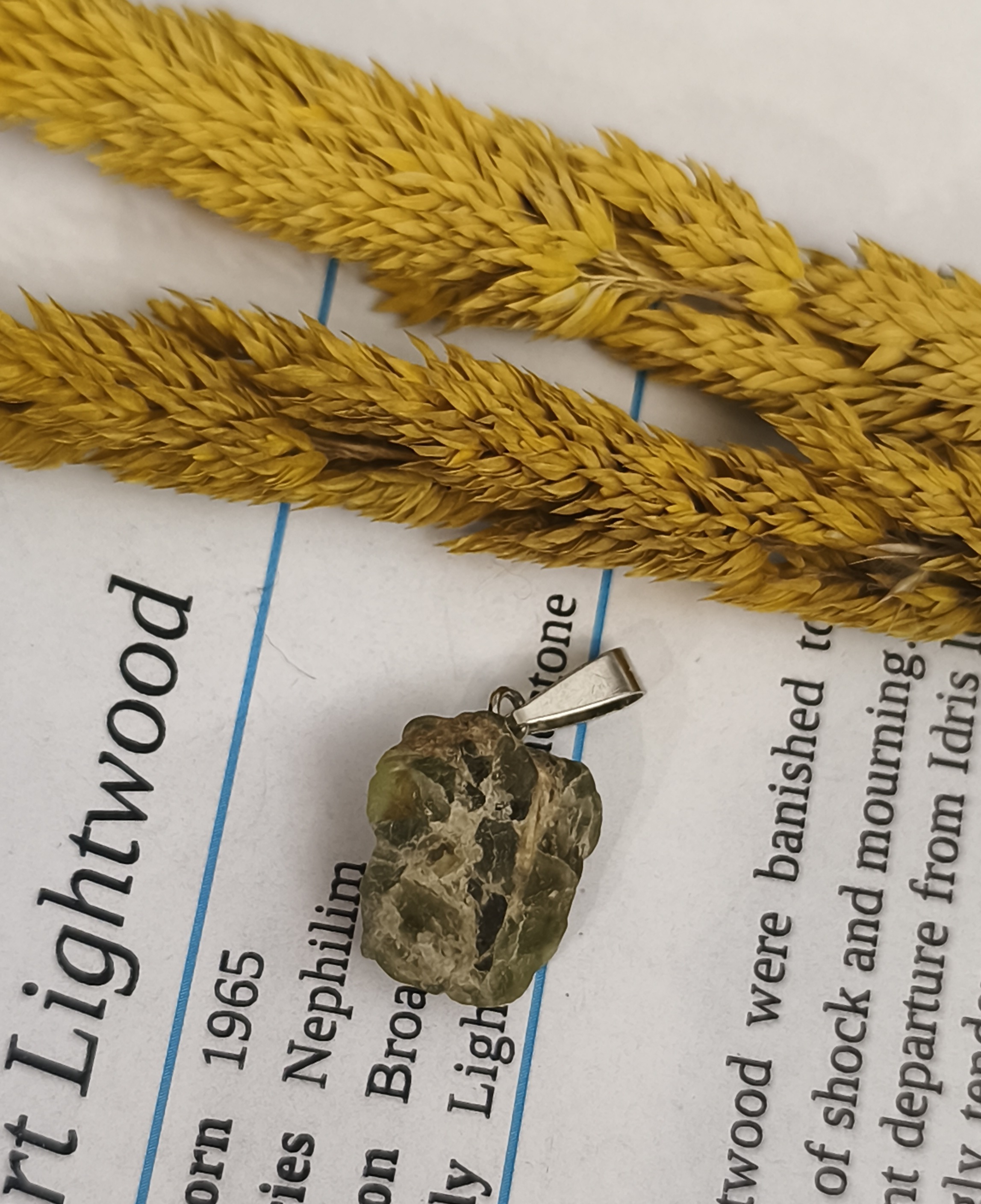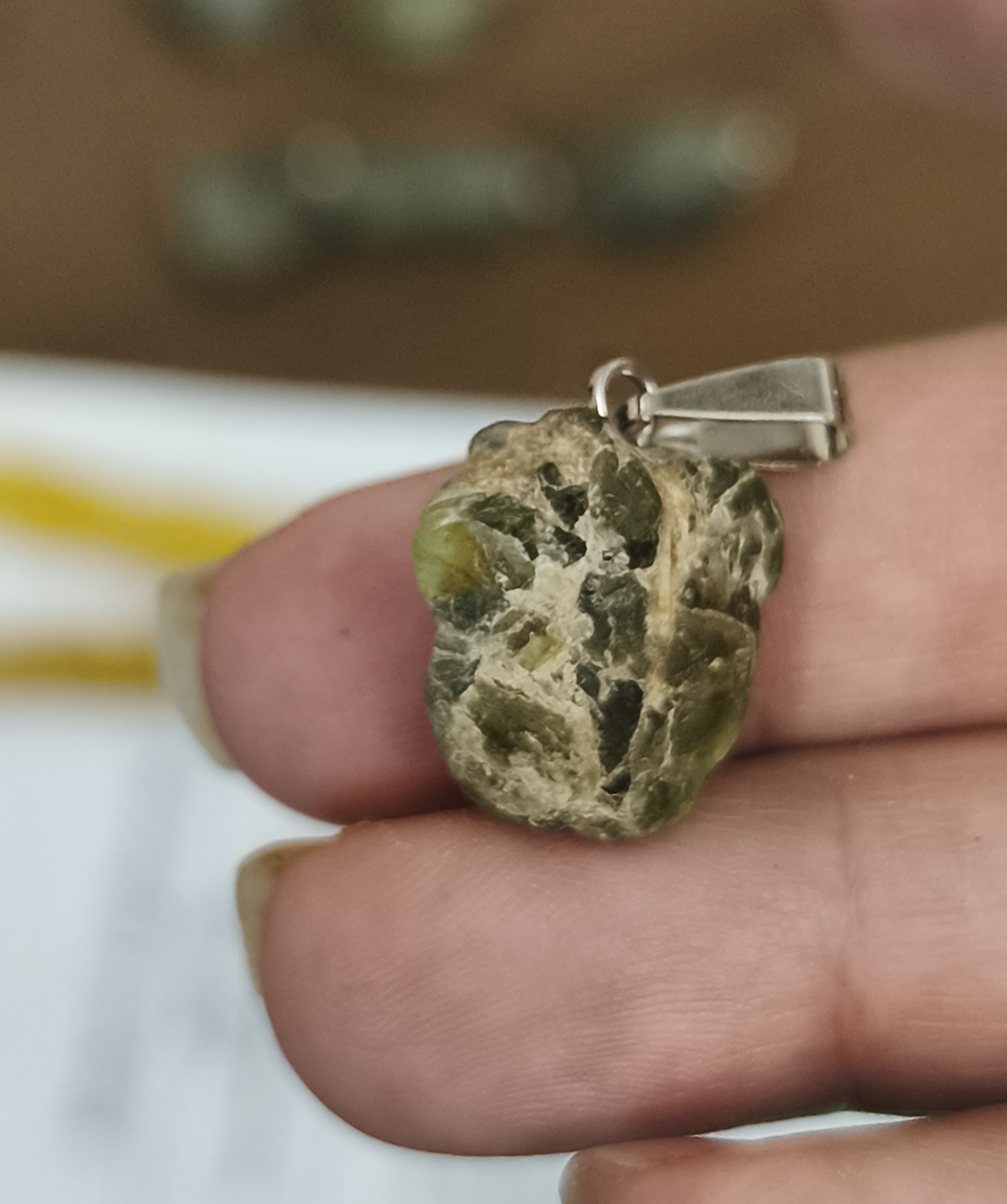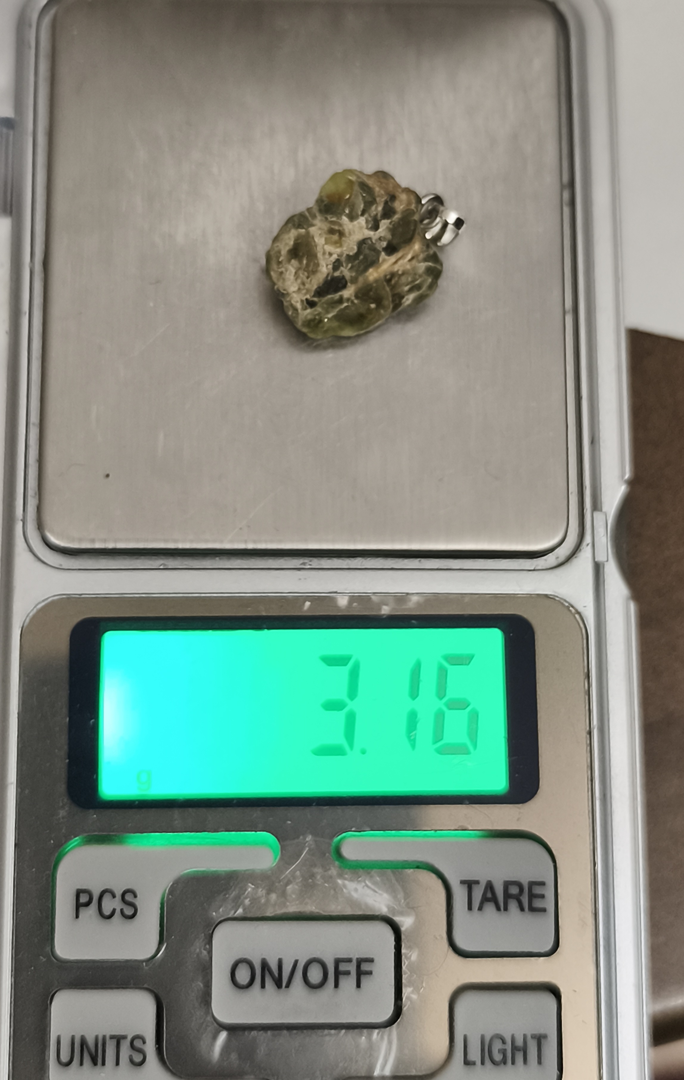 گردنبند سنگ زبرجد افغان راف۳.۱۶گرم تراش نخورده با زنجیر استیل سنگ طبیعی اصل