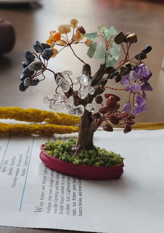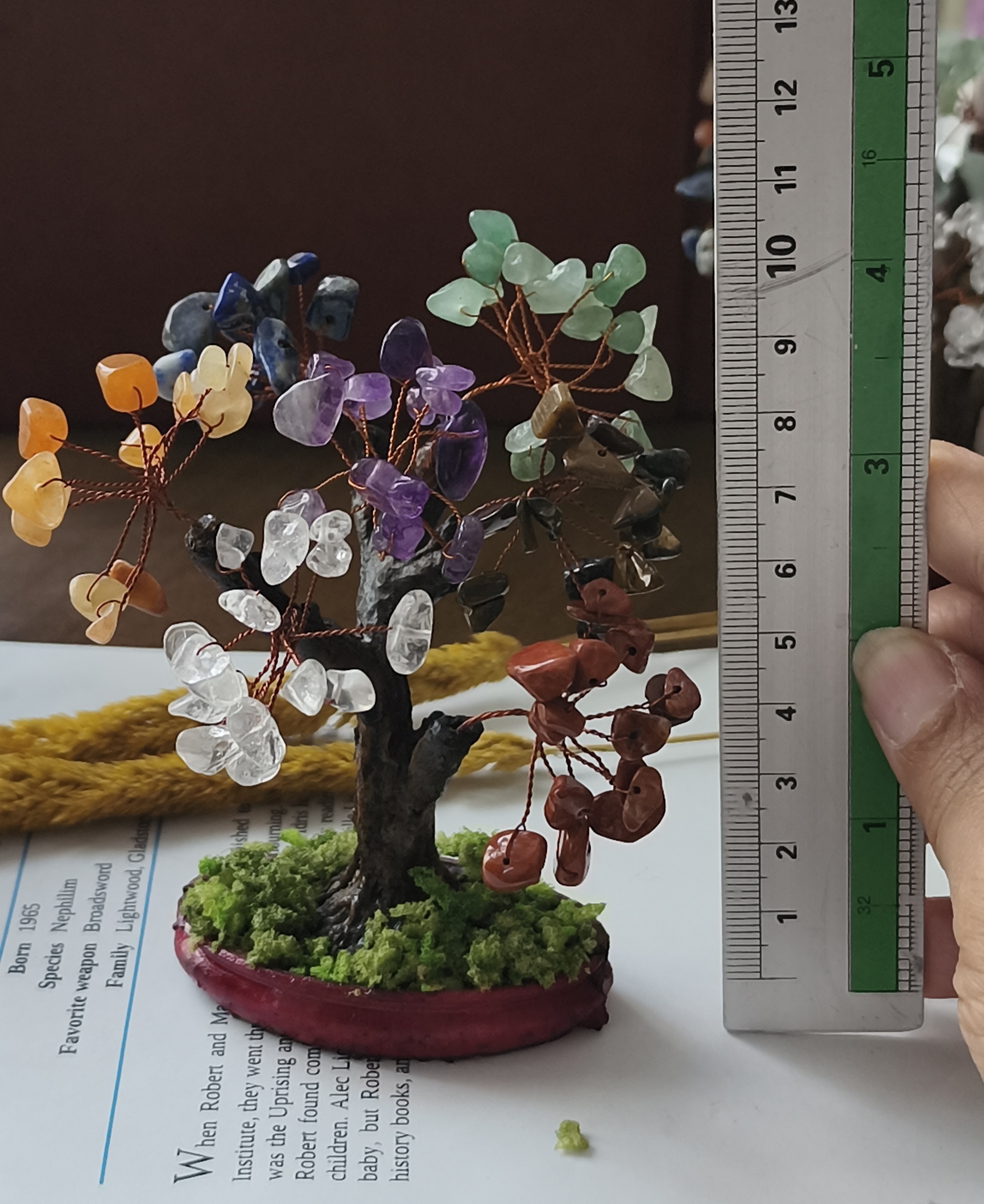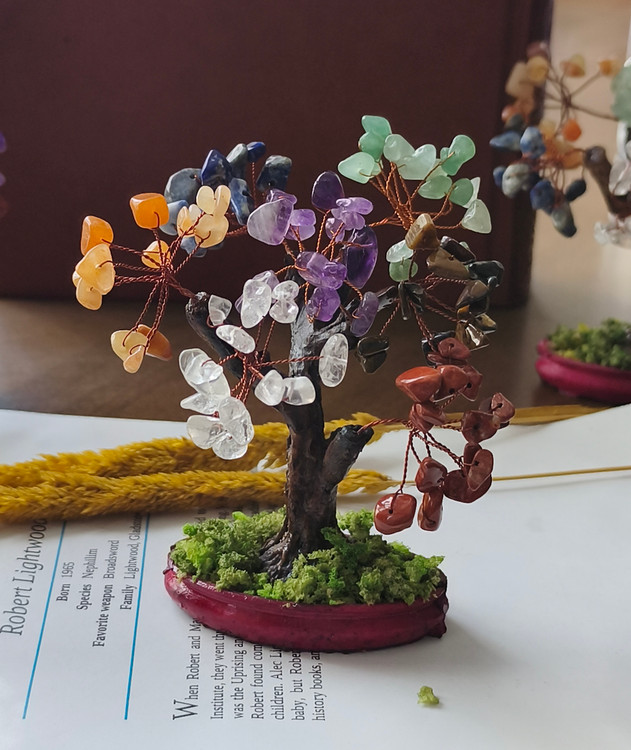 درختچه هفت چاکرا ۱۲سانت ساخته شده از سنگهای چیپسی اصل معدنی