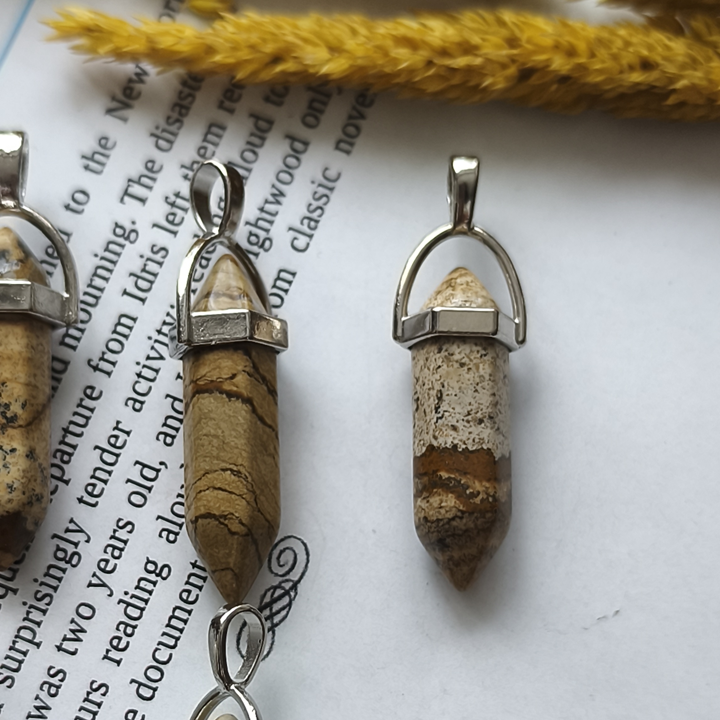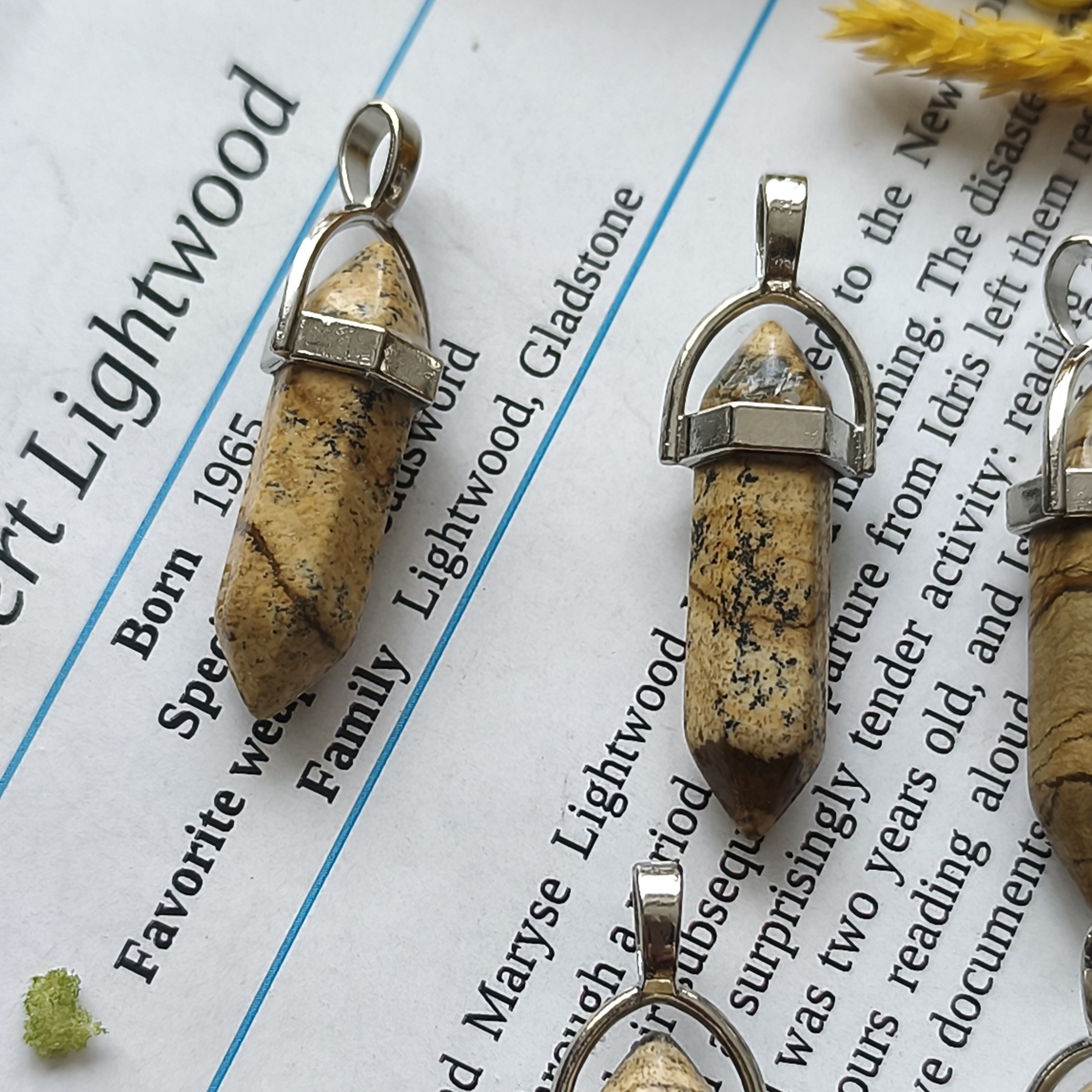 گردنبند سنگ جاسپر چوب اصل معدنی بازنجیر استیل