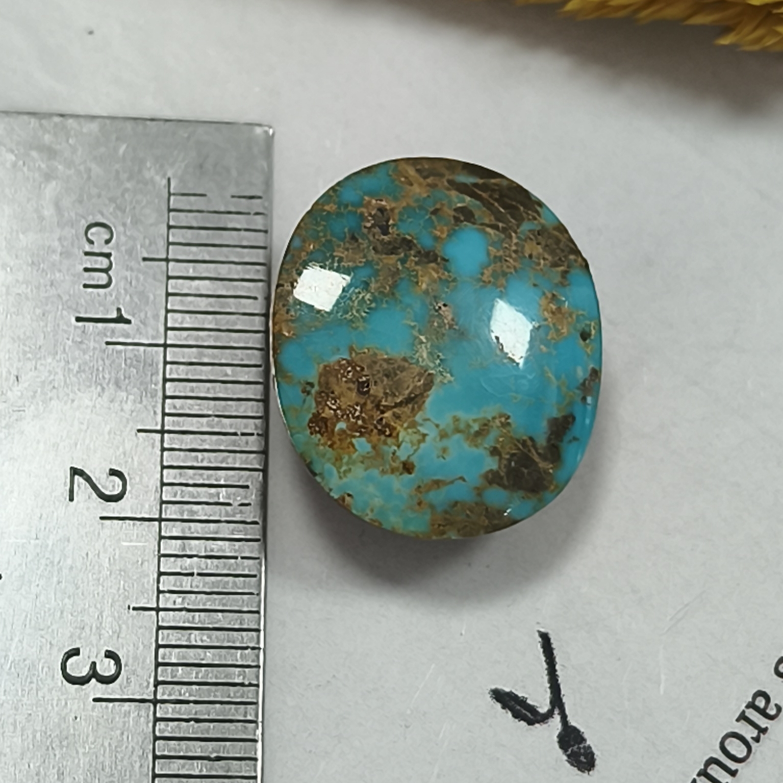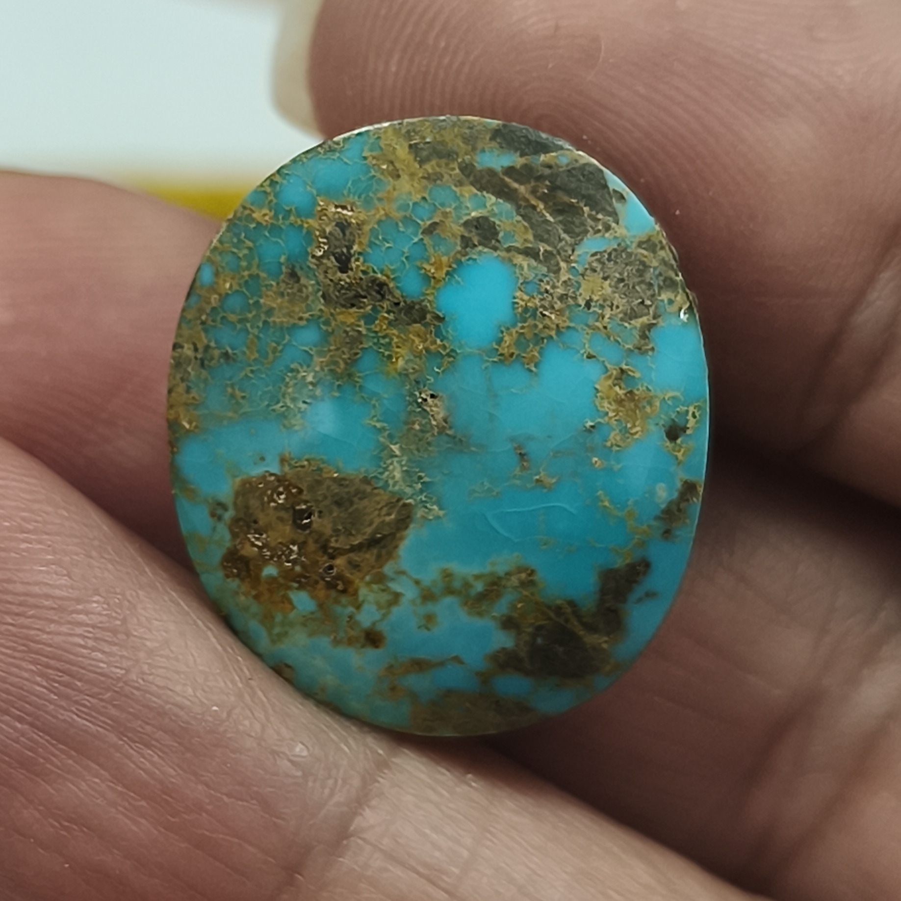 نگین فیروزه نیشابور با رگه های طلایی ۲۰ در ۱۷ میل