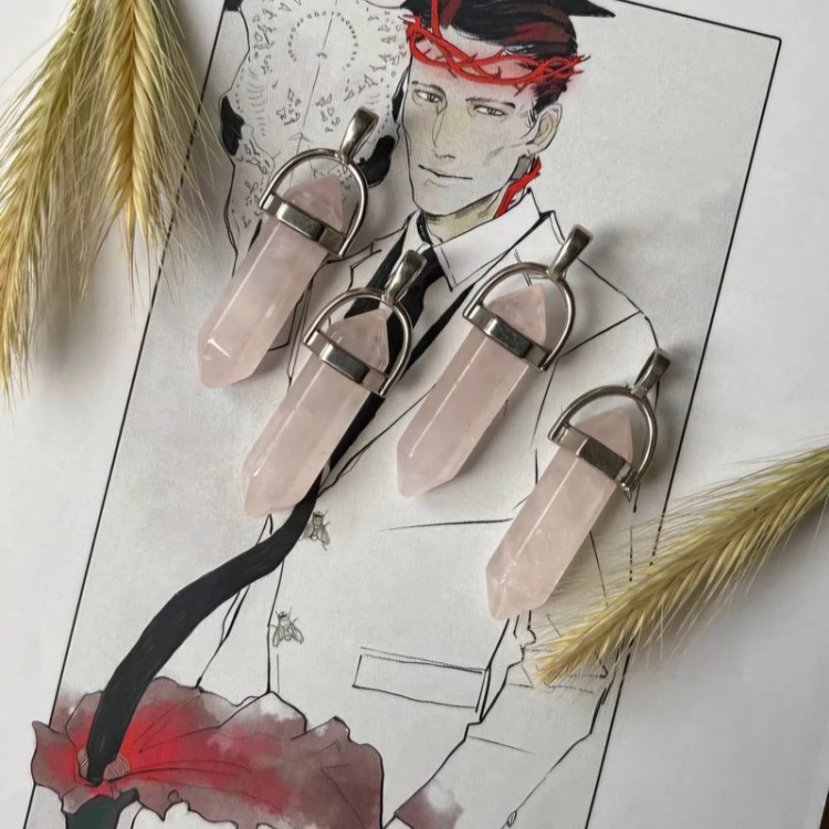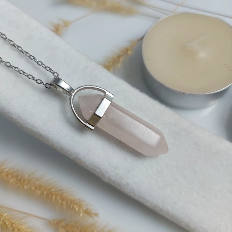 گردنبند سنگ رزکوارتز منشوری به همراه زنجیر استیل دیپلمات