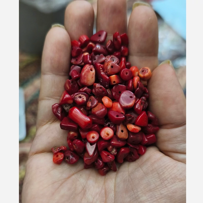 مهره سنگ مرجان طبیعی چیپسی سایز متوسط دفرمه راف تراش نخورده
