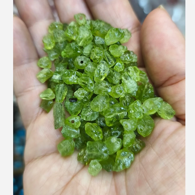 مهره چیپسی سنگ زبرجد افغان سایز درشت صددرصدطبیعی تراش نخورده دفرمه معدنی