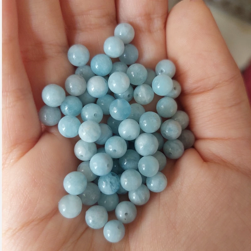 مهره سنگ آکوامارین اصل سایز 6 سوراخ دار گوی معدنی طبیعی