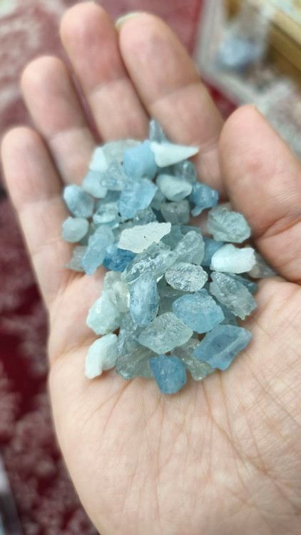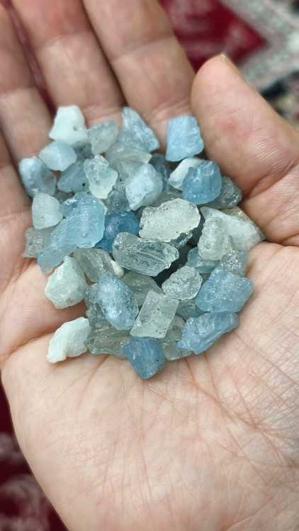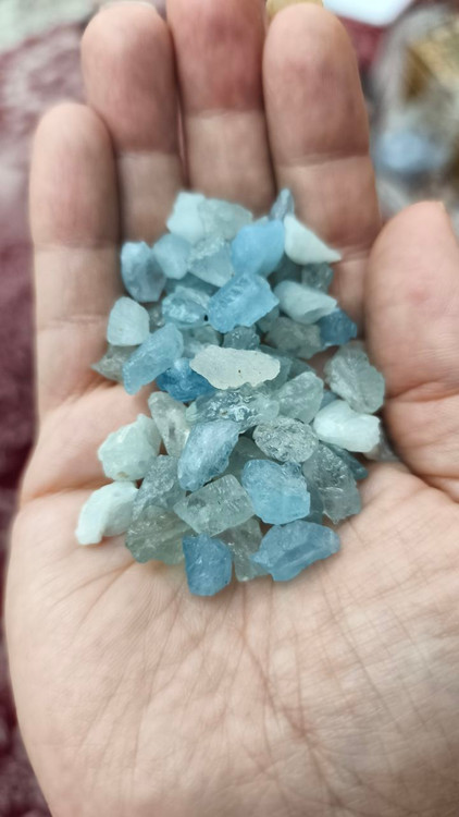 مهره سنگ بلور آکوامارین تراش نخورده راف سوراخ دار دفرمه سنگ اصل درجه یک طبیعی معدنی