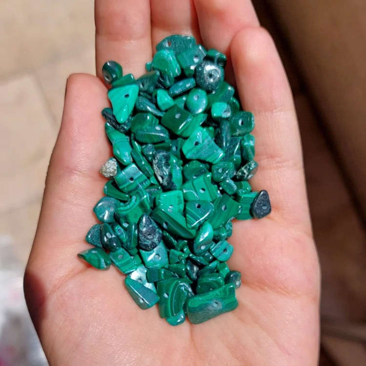 مهره سنگ مالاکیت چیپسی اصل طبیعی دفرمه تراش نخورده راف قیمت