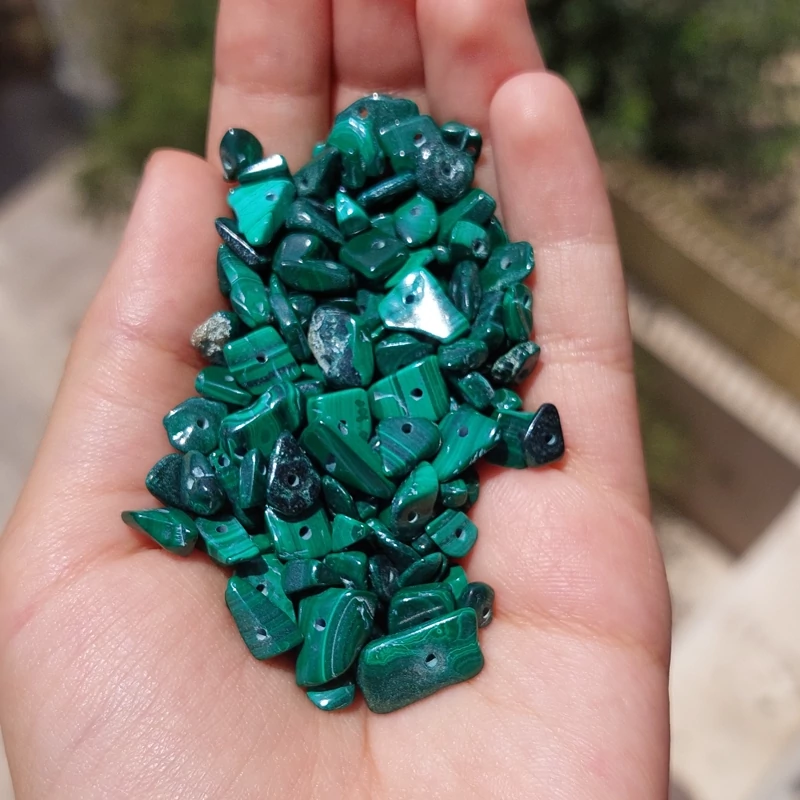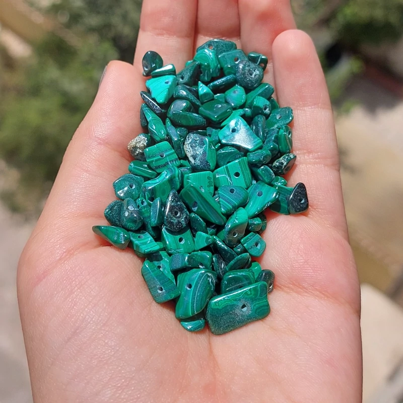 مهره سنگ مالاکیت چیپسی اصل طبیعی دفرمه تراش نخورده راف قیمت