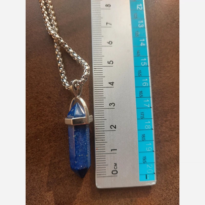 گردنبند منشوری سنگ لاجورد اصل با زنجیر استیل دیپلمات یا ویتالی رنگ ثابت و ضد حساسیت