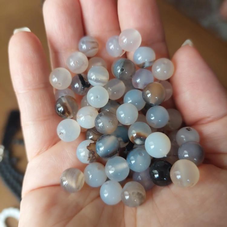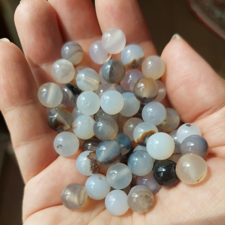 مهره سنگ عقیق شجر سایز 8 سنگ اصل طبیعی معدنی سوراخ دار