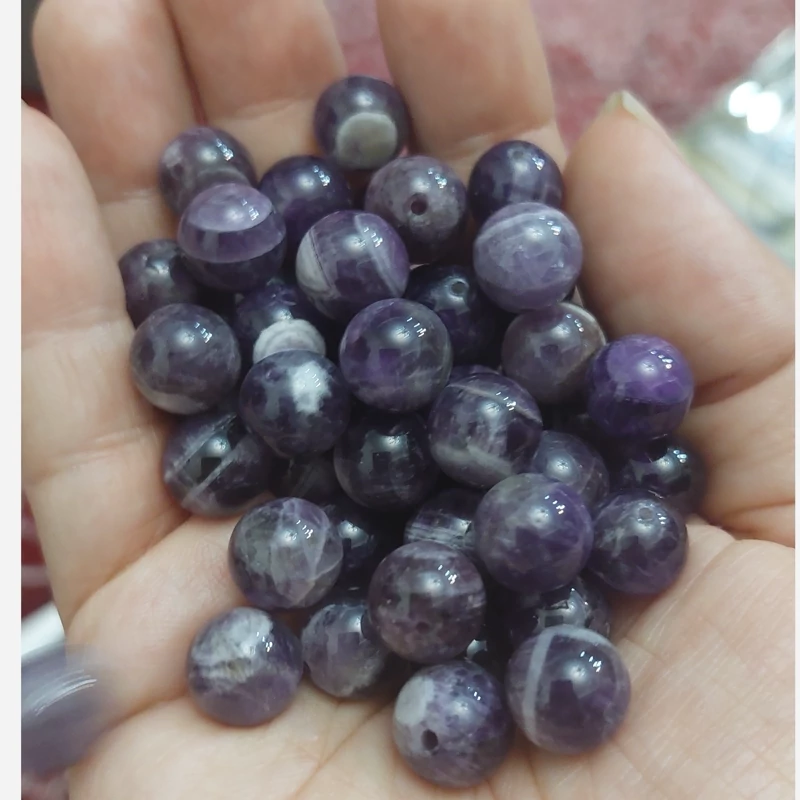 مهره سنگ آمیتیست لیس آگات یا شورن سایز 10 وارداتی از اروگوئه سنگ اصل طبیعی سوراخ دار