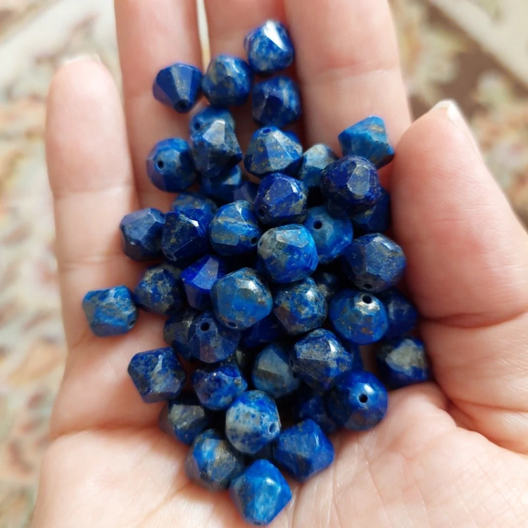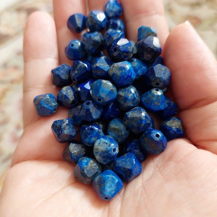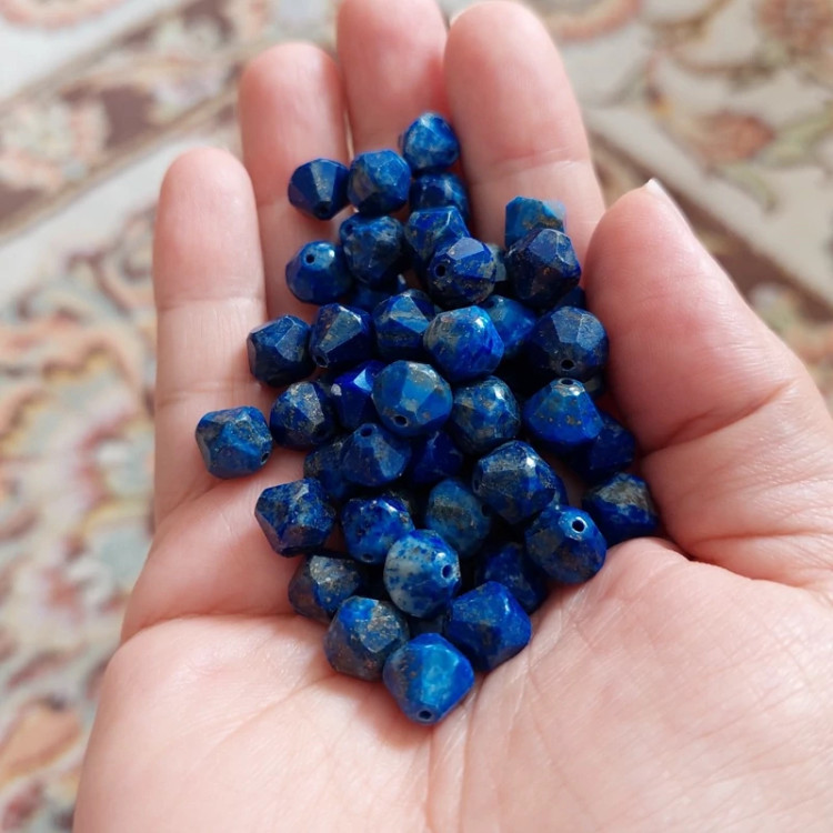 مهره سنگ لاجورد تراش استاروارداتی افغان سایز 8 سنگ اصل درجه یک مهره سوراخ دار طبیعی معدنی