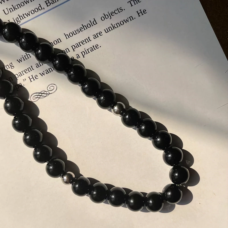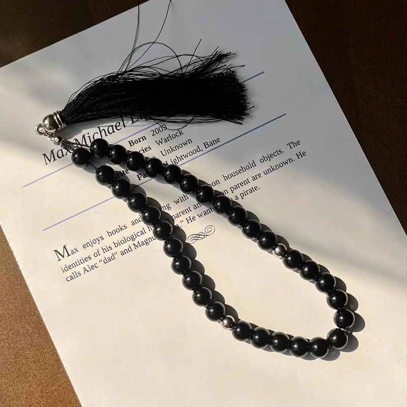 تسبیح اونیکس سیاه براق 33 دانه سایز 8 سنگ اونیکس اصل طبیعی
