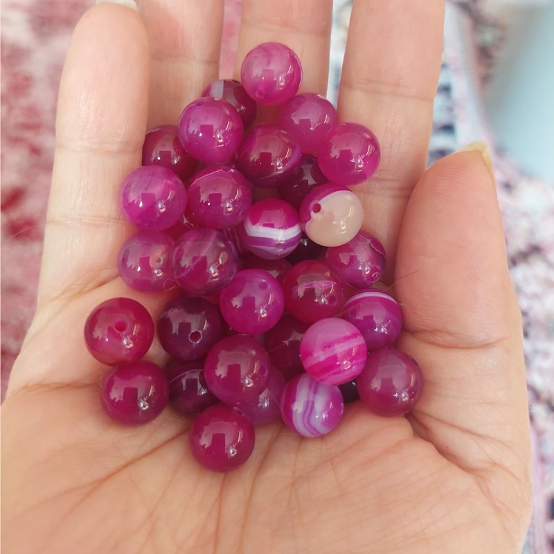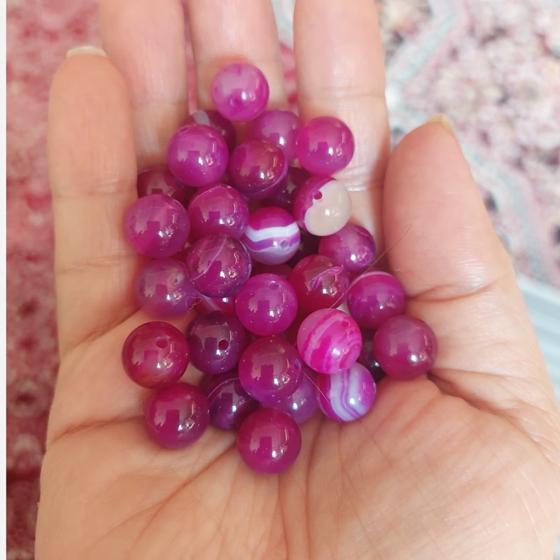 مهره سنگ عقیق صورتی ماداگاسکار سایز 10 سوراخ دار سنگ اصل طبیعی گوی عقیق سرخابی