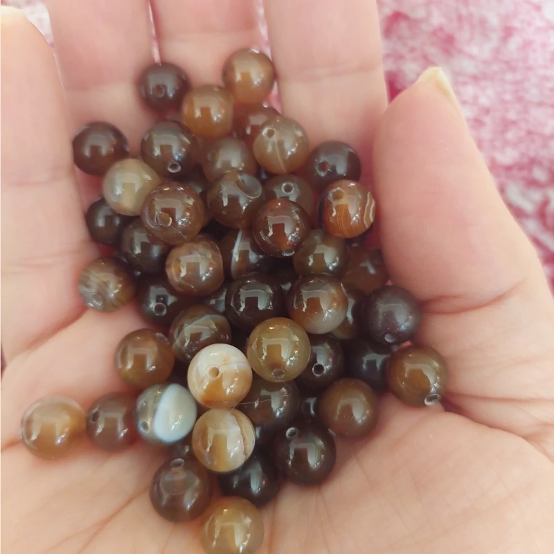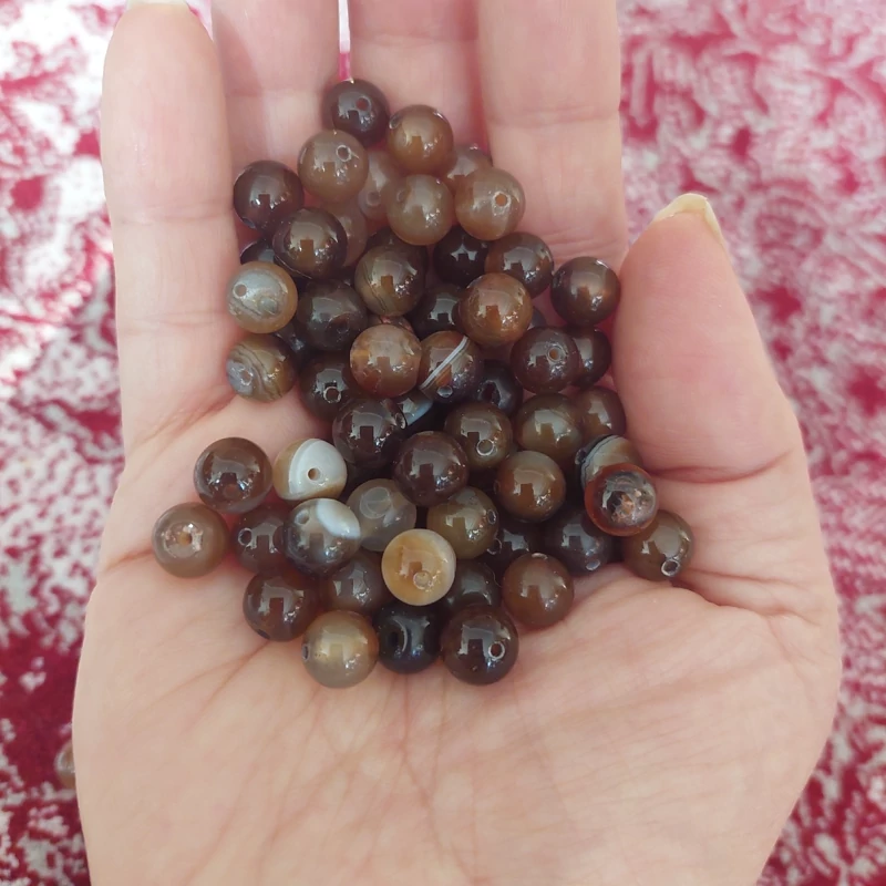 مهره سنگ عقیق ماداگاسکار قهوه ای سایز 8 سوراخ دار سنگ طبیعی گوی