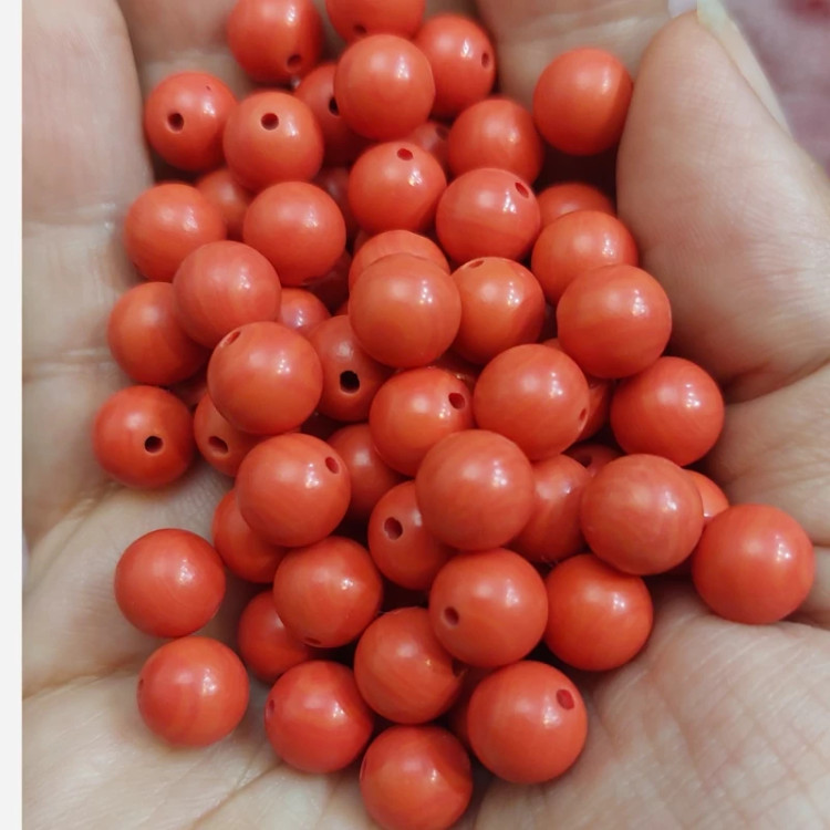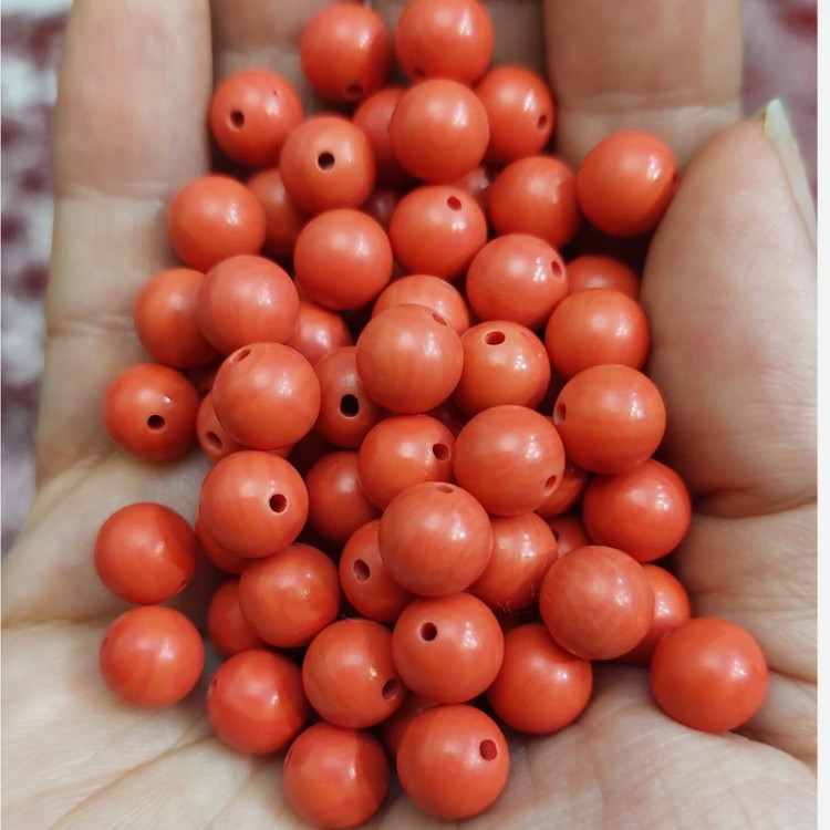 مهره مرجان طبیعی سایز 8 اصل طبیعی مرجان سرخ سوراخ دار گوی