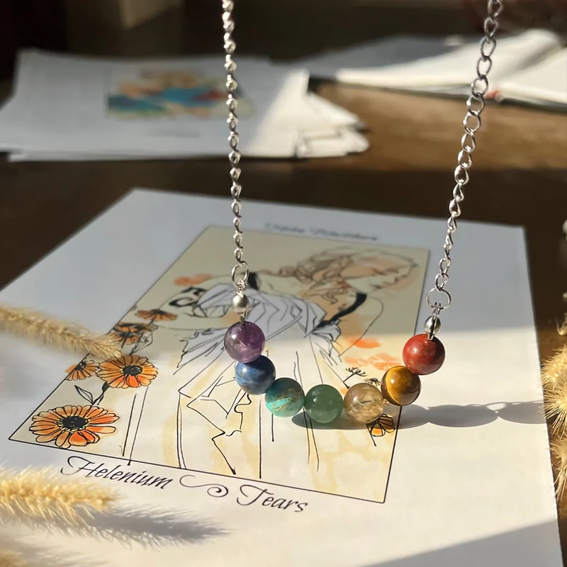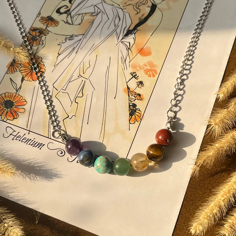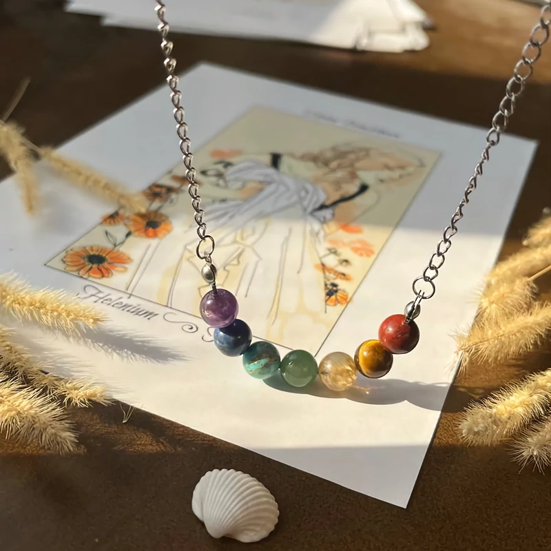 گردنبند هفت چاکرا با زنجیر استیل آویز سنگهای اصل درجه یک