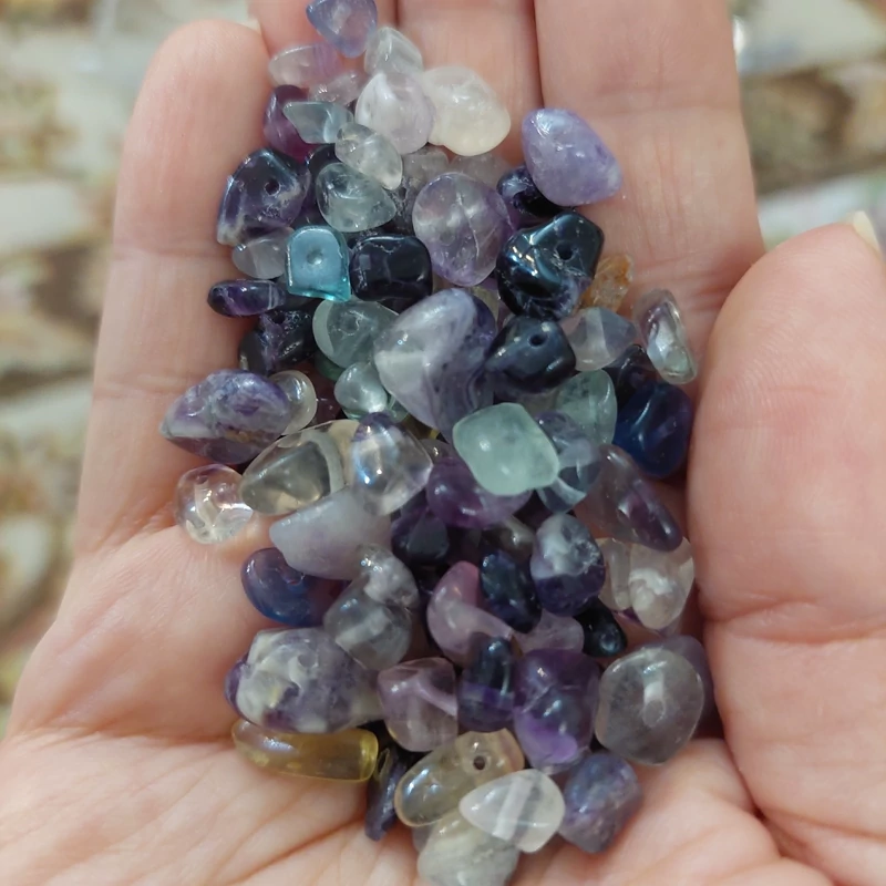 مهره سنگ فلورین رنگین کمانی چیپسی دفرمه تراش نخورده سوراخ دار سنگ اصل درجه یک فلوریت