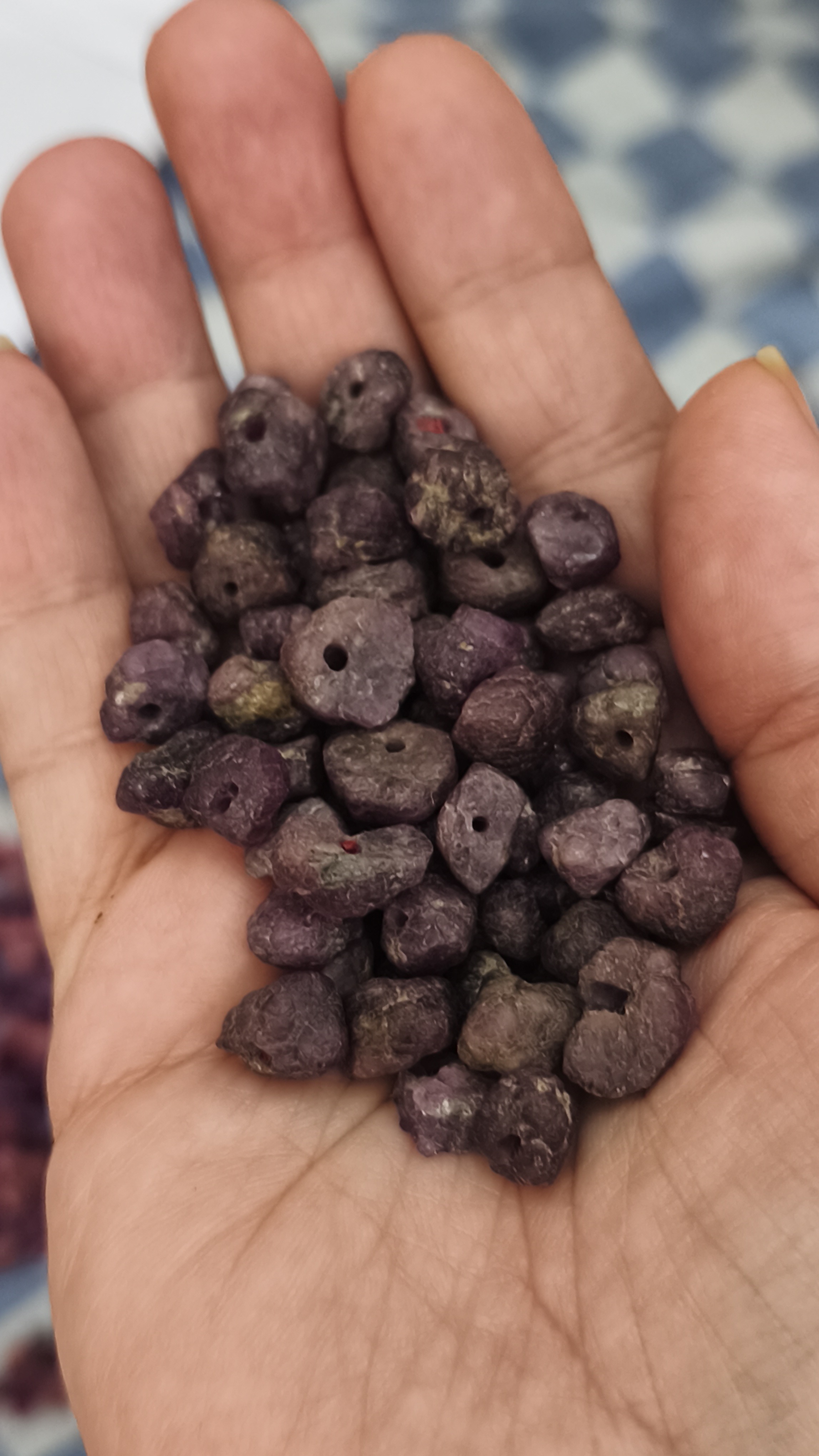 مهره سنگ یاقوت قرمز سرخ افغان تراش نخورده چیپسی سایز متوسط راف سوراخ دار سنگ اصل درجه یک