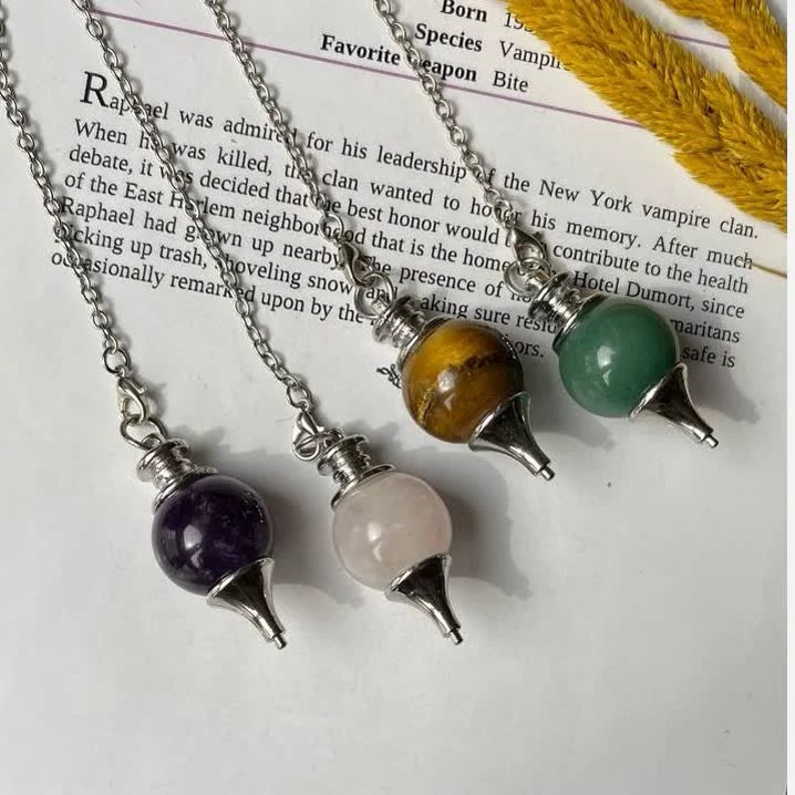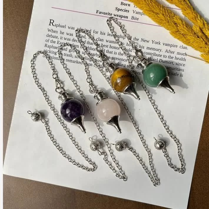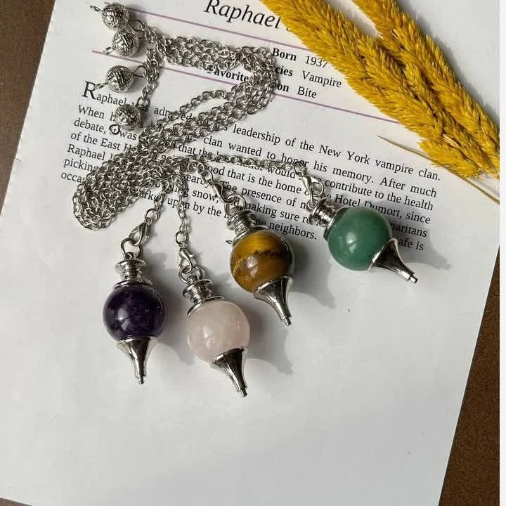 پاندول یا شاقول ابن سینا سنگ اصل رزکوارتز آمیتیست چشم ببر آونتورین سبز
