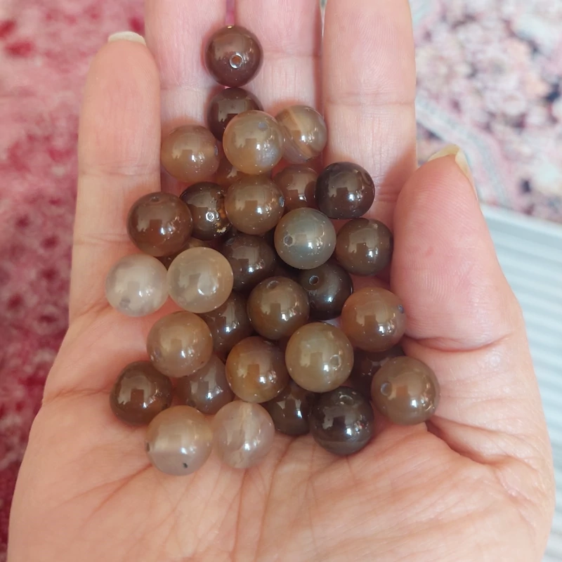 مهره سنگ عقیق قهوه ای ماداگاسکار سایز 10 سوراخ دار سنگ اصل طبیعی گوی