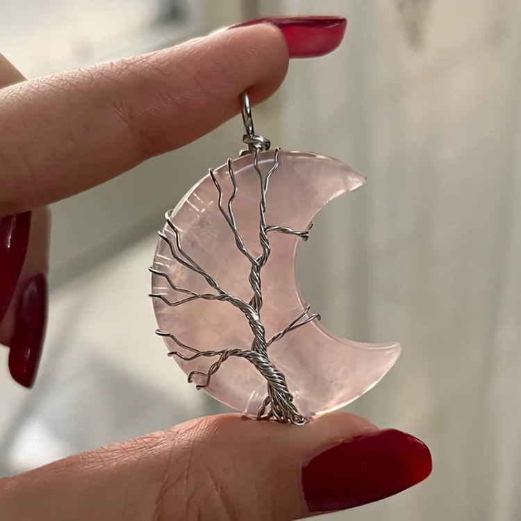 گردنبند سنگ رزکوارتز ماه ساخته شده با مفتول استیل رنگ ثابت سنگ اصل درجه یک آویز