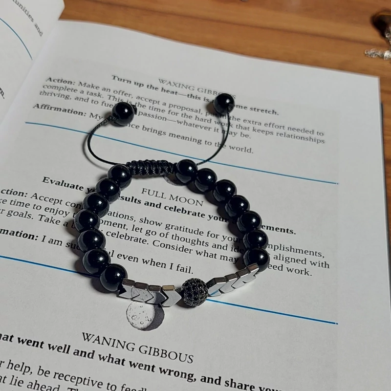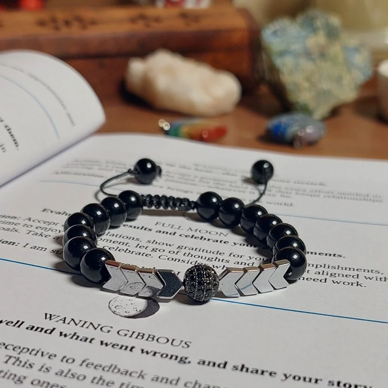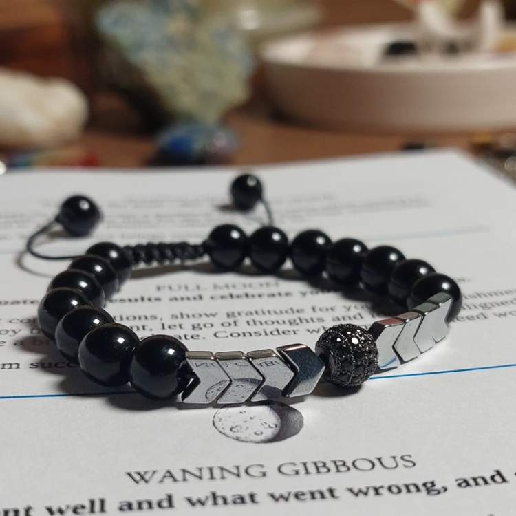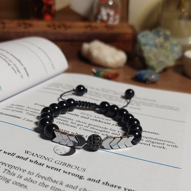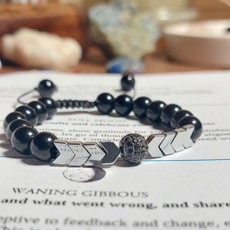 دستبند سنگ حدید اونیکس سیاه و نگین سواروسکی اصل با گره کشویی قابل تنظیم سایز