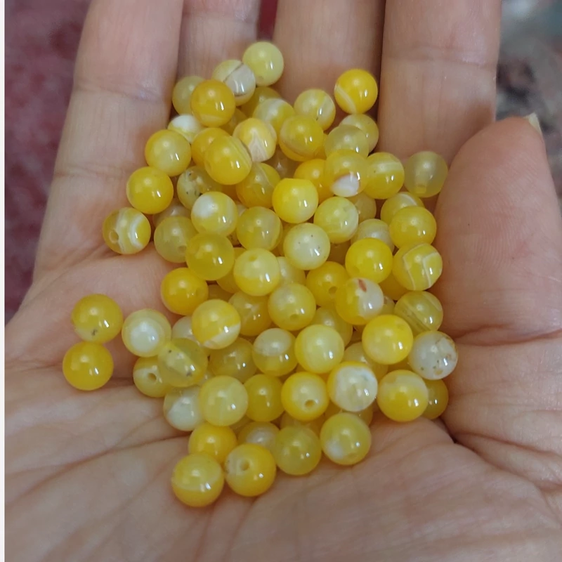 مهره سنگ عقیق زرد ماداگاسکار سایز 6 سوراخ دار سنگ اصل طبیعی