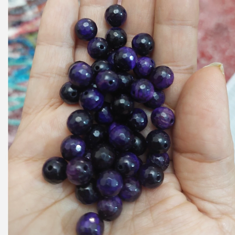 مهره سنگ چشم ببر بنفش سایز 8 تراش جواهری سوراخ دار سنگ اصل با تلالویی بی نظیر