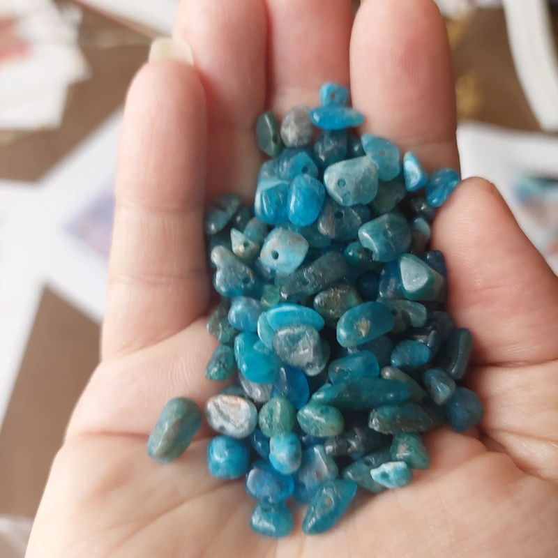 مهره سنگ آپاتیت آبی چیپسی تراش نخورده راف سوراخ دار دفرمه سنگ اصل طبیعی