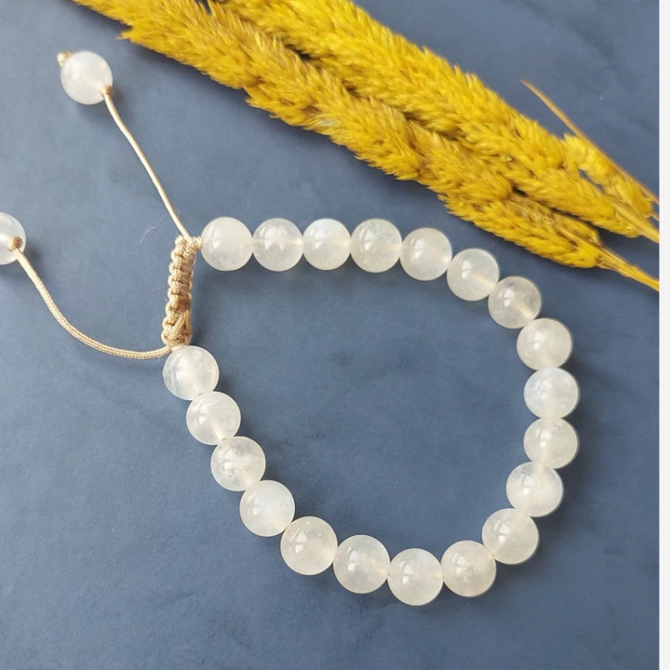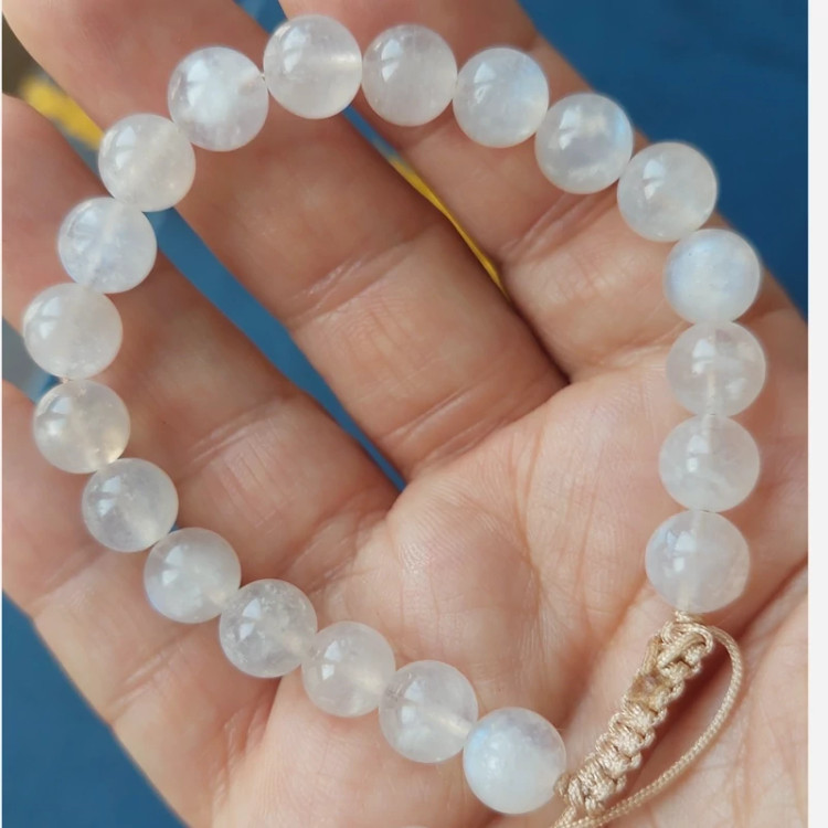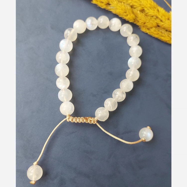 دستبند سنگ مون استون(سنگ ماه) اصل با نخ ابریشمی و گره کشویی