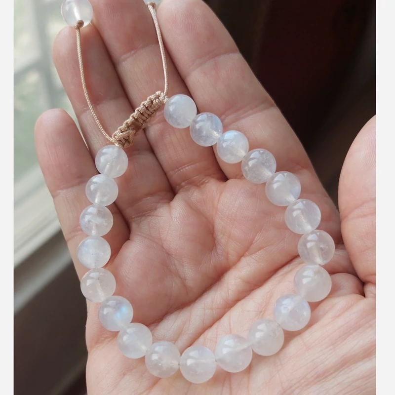 دستبند سنگ مون استون(سنگ ماه) اصل با نخ ابریشمی و گره کشویی