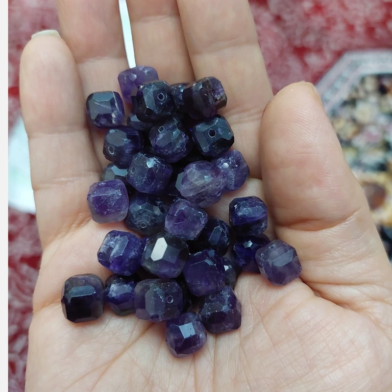 مهره سنگ آمیتیست باکسی مربعی سایز 10 سوراخ دار سنگ اصل طبیعی