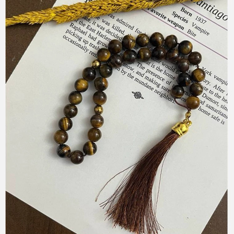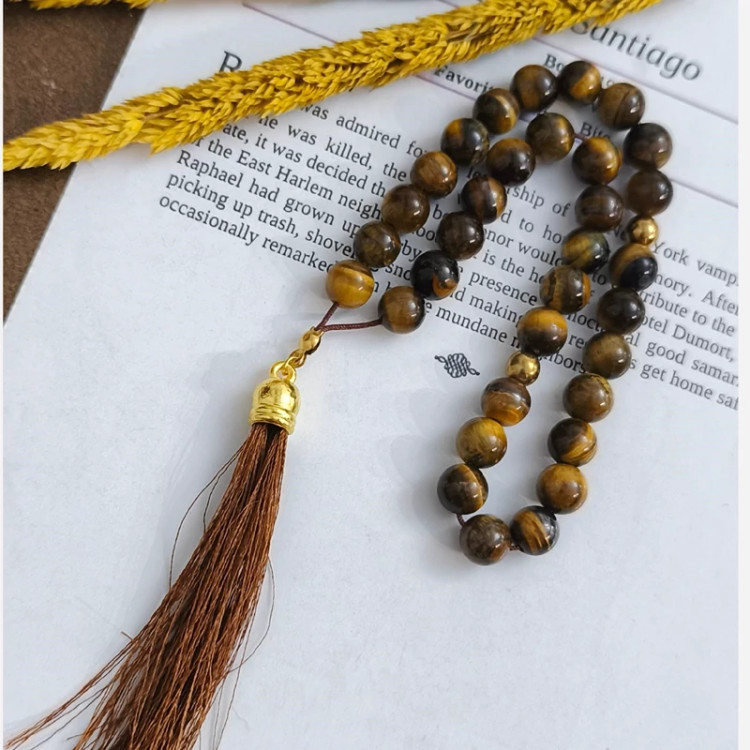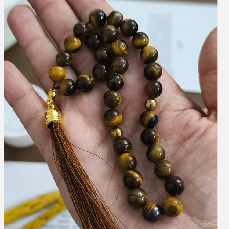 تسبیح سنگ چشم ببر 33 دانه سنگ اصل طبیعی سایز 8 طبیعی