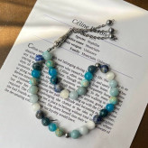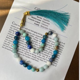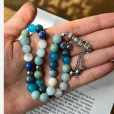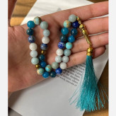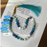 تسبیح 33 دانه آبی آسمانی از سنگهای اصل طبیعی سایز سنگ 8 لاجورد آپاتیت عقیق آبی فیروزه آمازونیت آکوامارین سلنایت