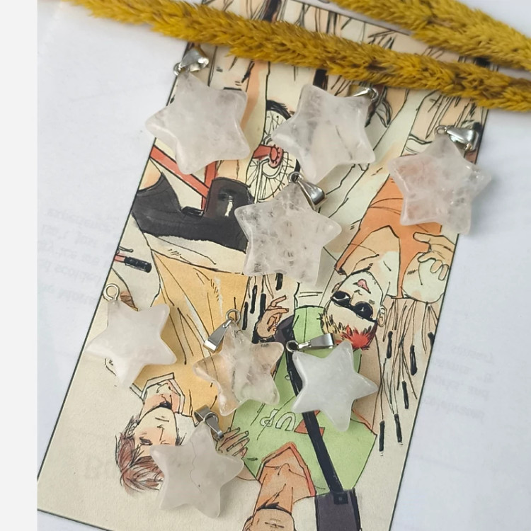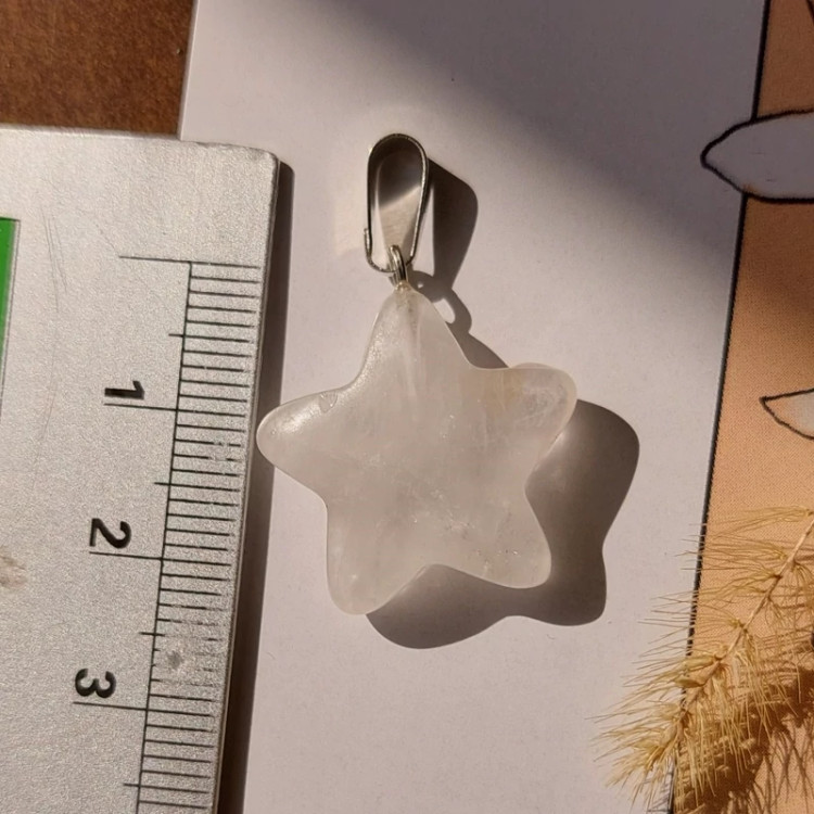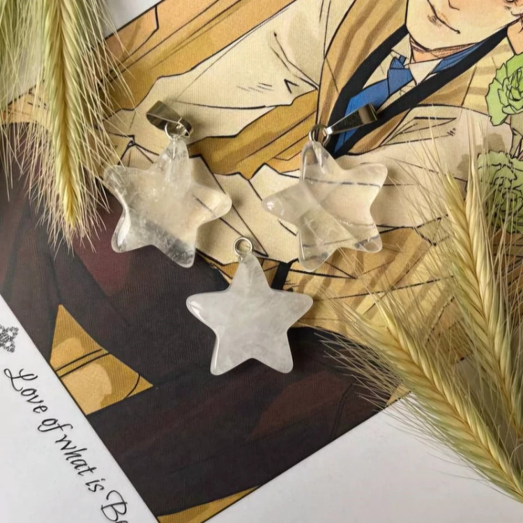 گردنبند سنگ کریستال کوارتز ستاره ای سنگ اصل کوارتز شفاف مدال گردنبند به همراه زنجیر
