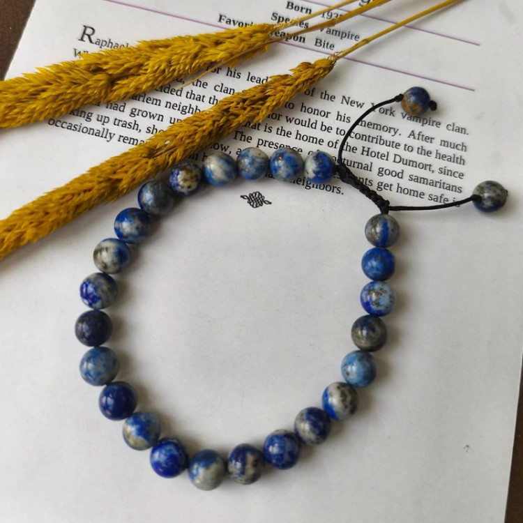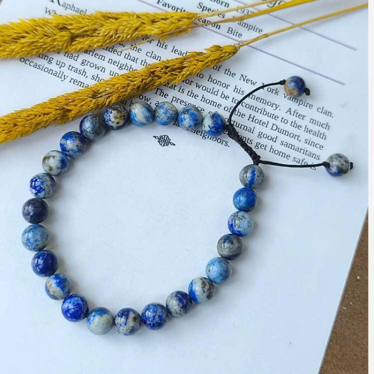 دستبند سنگ لاجورد با گره کشویی سنگ اصل طبیعی