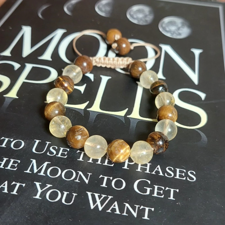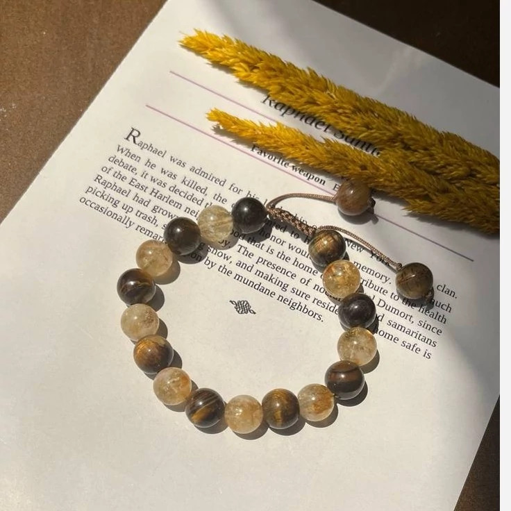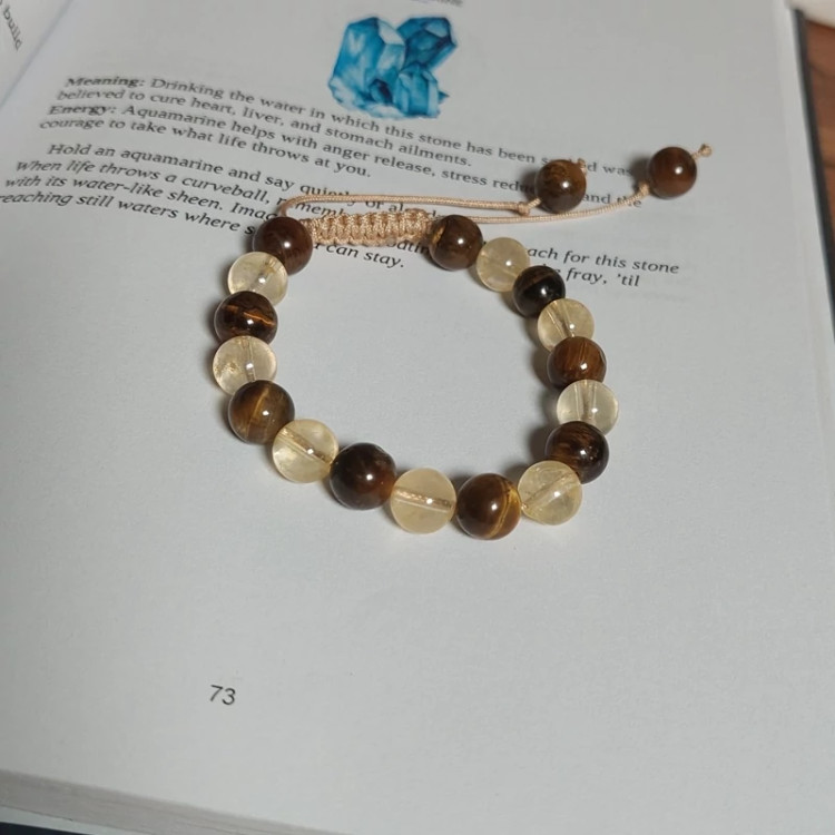 دستبند سنگ چشم ببر و سیترین سنگ اصل همراه با گره کشویی قابل تنظیم