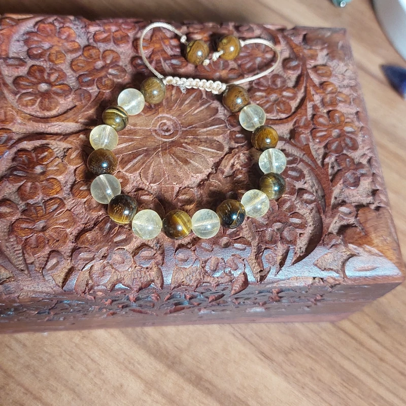 دستبند سنگ چشم ببر و سیترین سنگ اصل همراه با گره کشویی قابل تنظیم