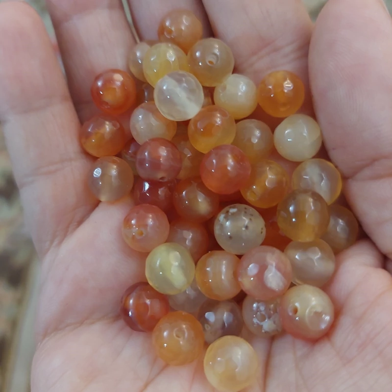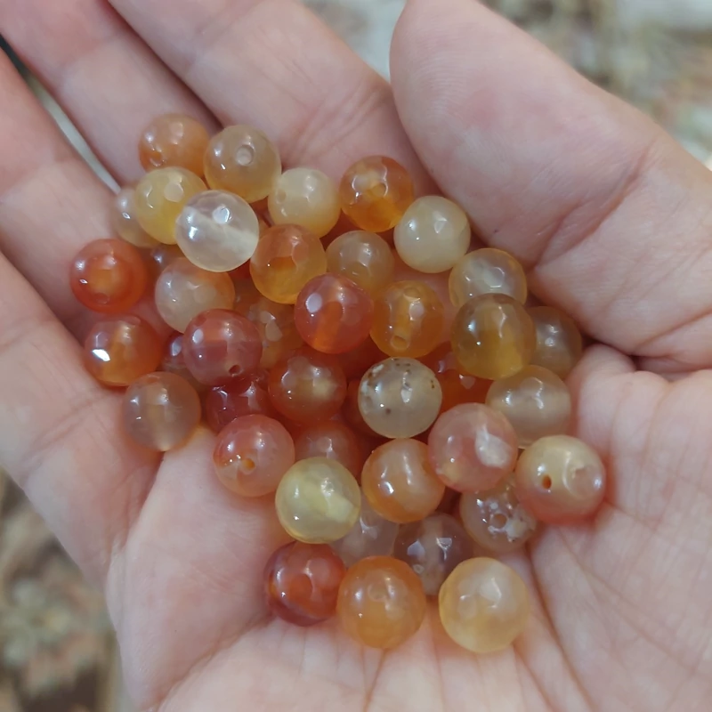 مهره سنگ عقیق عسلی تراش جواهری سایز 8 دو طرف سوراخ دار سنگ اصل درجه یک طبیعی