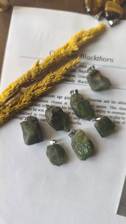 گردنبند سنگ زبرجد افغان راف تراش نخورده با زنجیر استیل سنگ طبیعی اصل