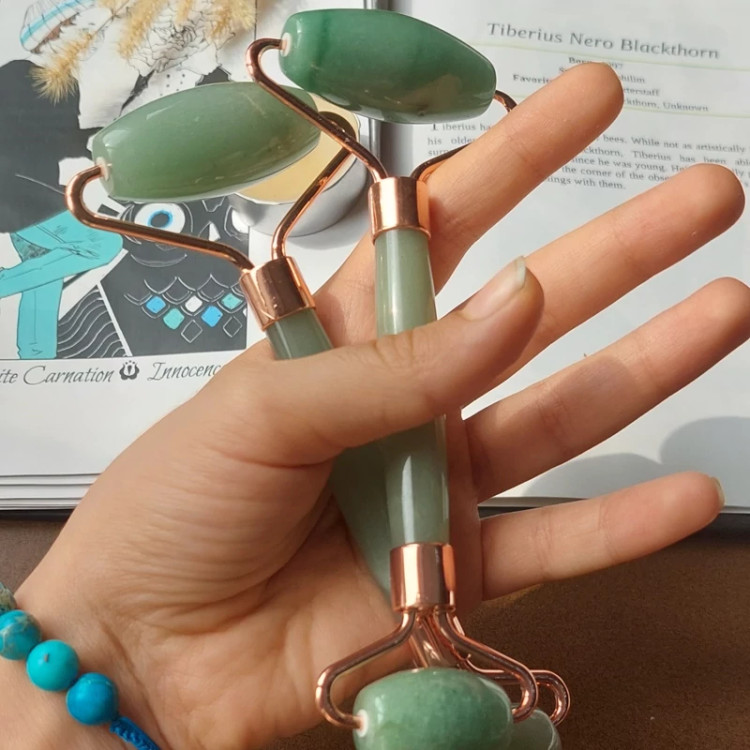 جیدرولر سنگ آونتورین اصل ماساژ ور صورت و گردن مناسب لیفت و ماساژ صورت و گردن