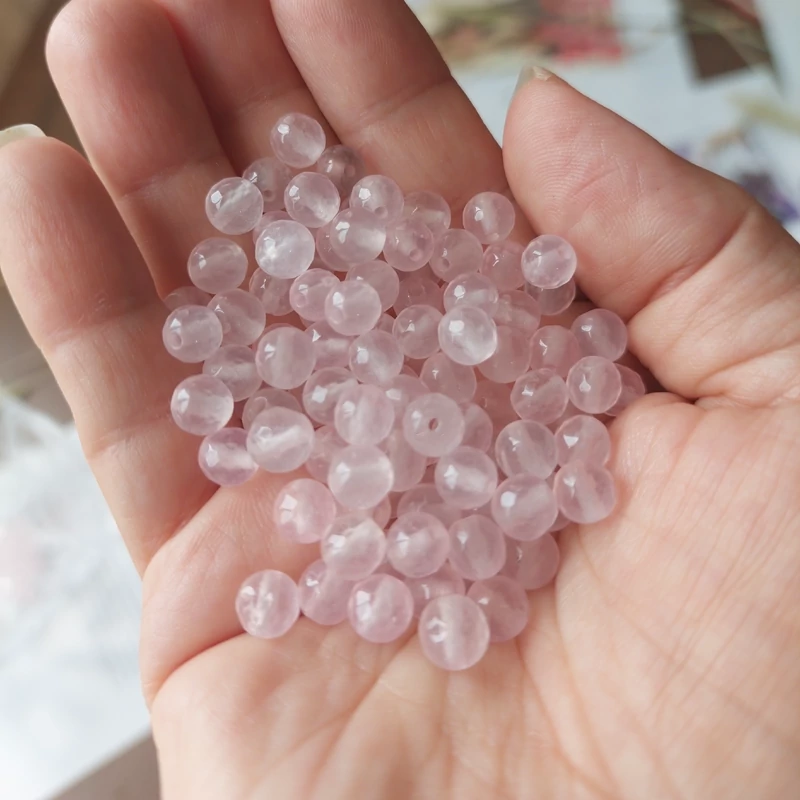 مهره سنگ جید صورتی تراش جواهری سایز 6 سنگ اصل طبیعی