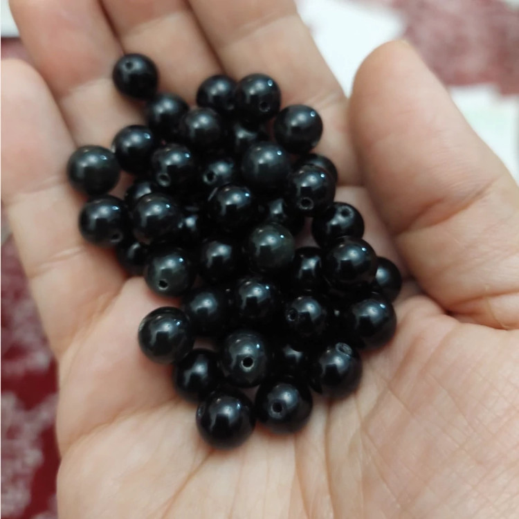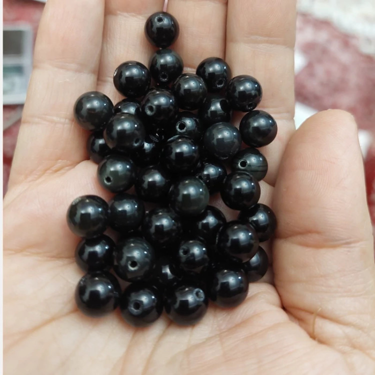 مهره سنگ آبسیدین سیاه سایز 8 سنگ اصل طبیعی سوراخ دار